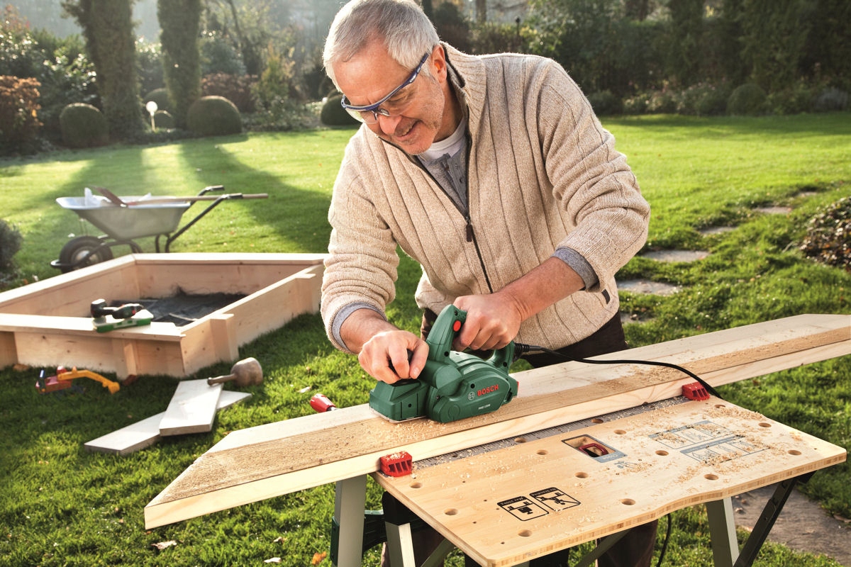 Зручний і ефективний електрорубанок від BOSCH, завдяки високій потужності двигуна 550 Вт і малій вазі 2,6 кг, забезпечує високий комфорт роботи і високу стійкість до будь-яких перевантажень під час роботи.