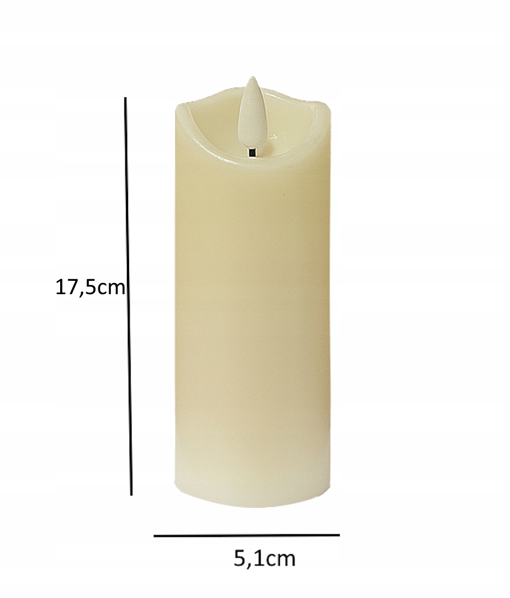 - Світлодіодна свічка кремового кольору висотою 17,5 см із мерехтливим полум’ям — ідеальне рішення для тих, хто шукає елегантне та безпечне декоративне освітлення.