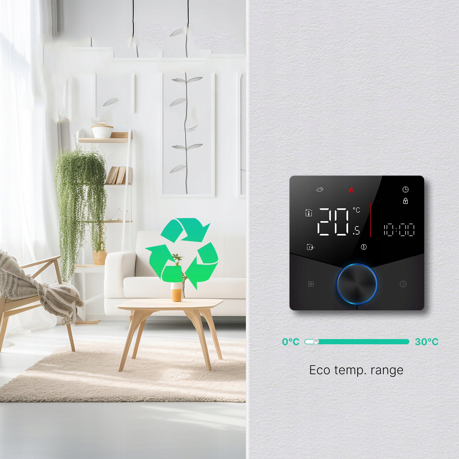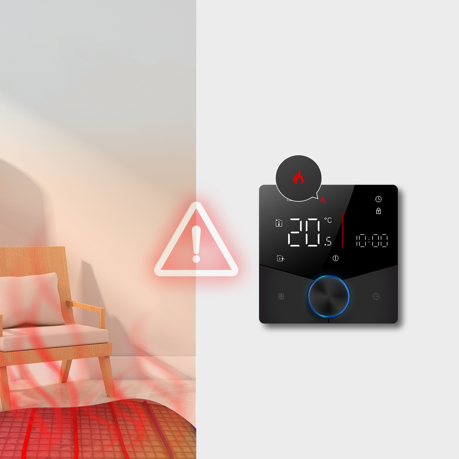 Цифровий термостат для опалення підлоги в сауні: Десять термостатів оснащені поточними реле, які відповідають вимогам безпеки опалення та сауни. Ви можете інтегруватися з розумними динаміками, щоб ви могли отримати доступ до нового методу управління голосовим.