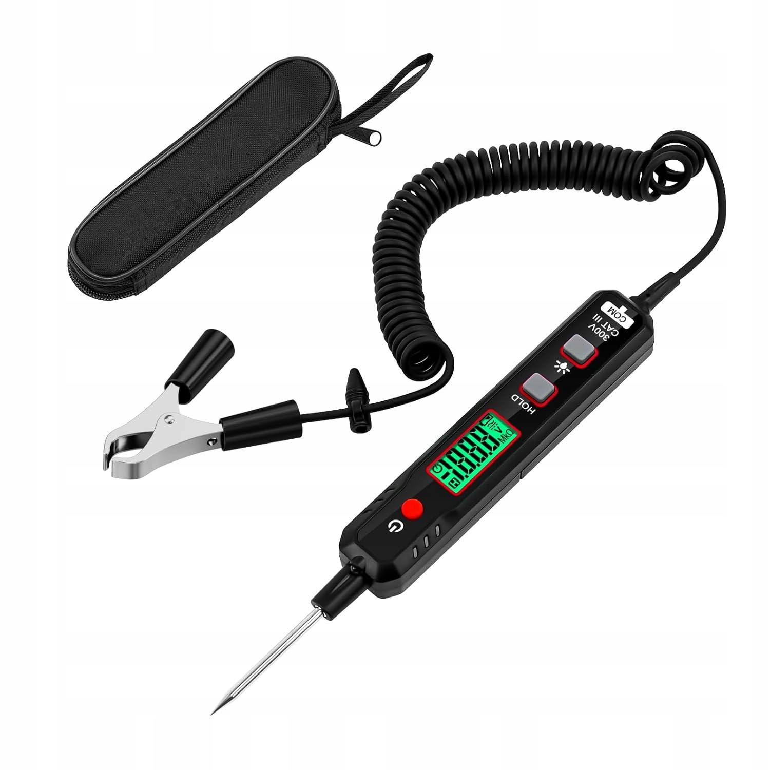 - Широкий діапазон виявлення від 0,8 В до 100 В постійного струму означає, що пристрій підходить для різних випробувань схем транспортних засобів, таких як тест на запобіжник автомобіля, тест на кабель, тест на акумулятор та систему ACC, тому ви можете легко перевірити проблеми в транспортному засобі. Пристрій може автоматично ідентифікувати позитивні та негативні полюси акумулятора, а знак "-" перед читанням вказує на негативний полюс. Кнопка збереження даних дозволяє підтримувати незмінні дані на екрані для підтримки даних.