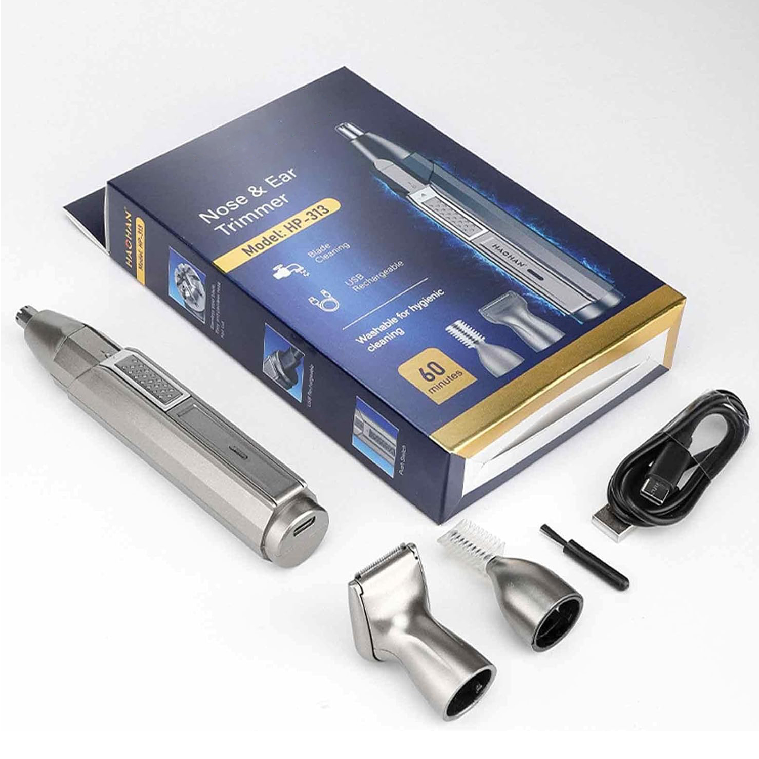 Цей тример для волосся носа постачається з трьома різними лопатями для задоволення різних потреб. Він може легко і ефективно стригти волосся в носі, вухах, бровах, бороді, баках тощо. Це хороший вибір для вирішення проблем з волоссям і волоссям для чоловіків і жінок. Це достатньо 30 секунд обрізки, покажіть свою впевненість у будь -який час.