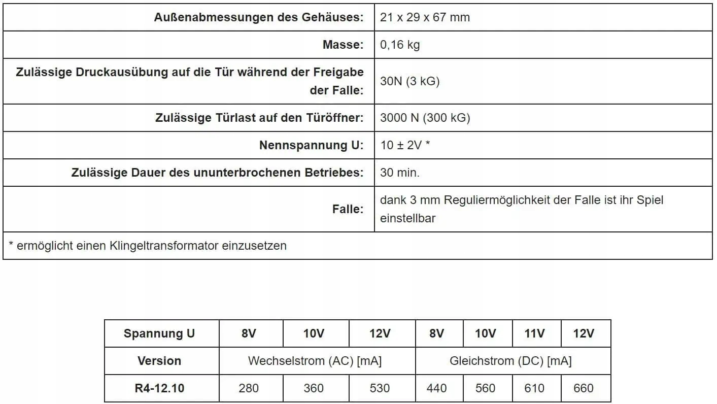 Затвор R4 призначений для дистанційного відкривання лівих, правих і двостулкових дверей і воріт. Працює з замком на засув або засув. Перевагами засувки є невеликі розміри, симетрична конструкція, завдяки якій її можна монтувати як на ліві, так і на праві двері, а також більша надійність у роботі навіть у разі кривої дверної коробки чи перекошених дверей. Гачок R4 можна монтувати зі стандартними пластинами.