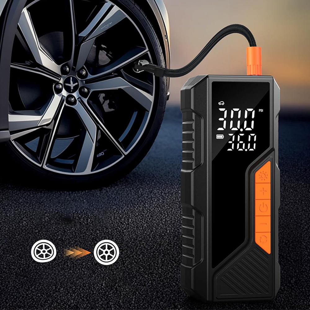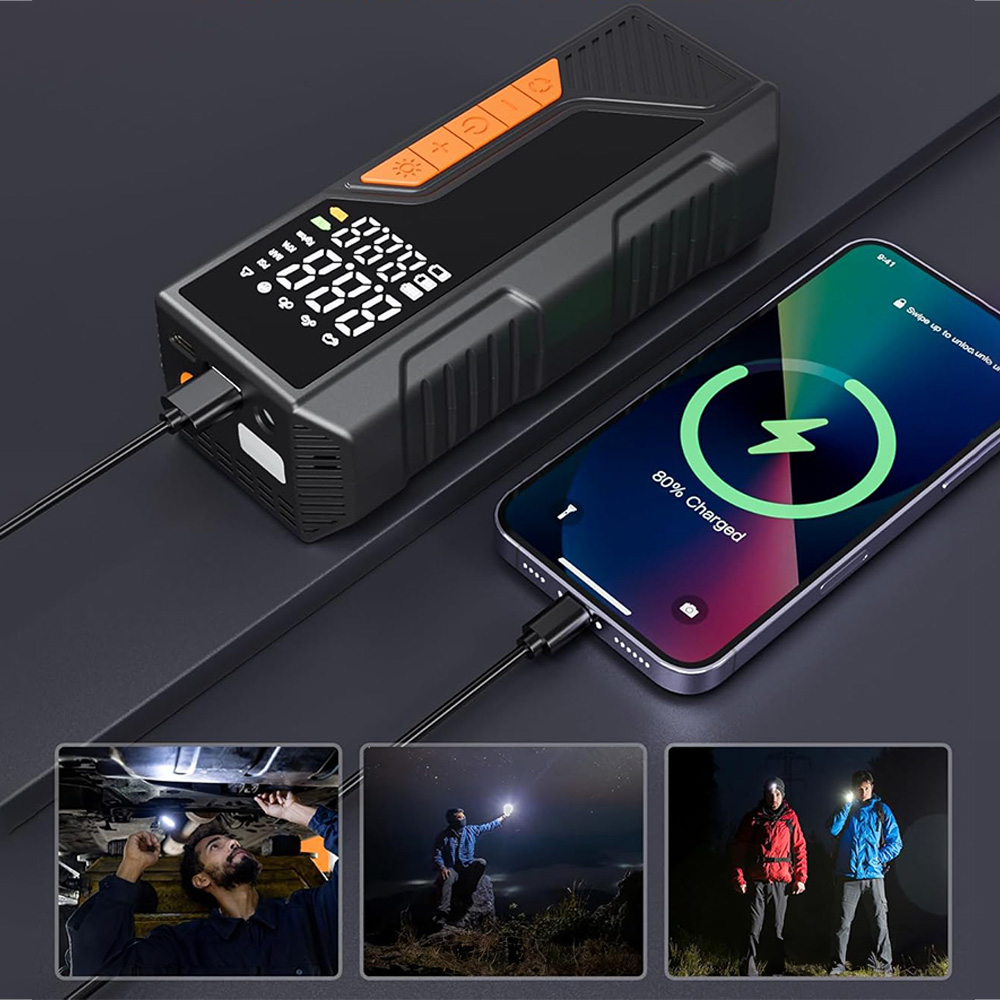 може використовуватися як аварійне джерело живлення для мобільних телефонів або інших електронних пристроїв. Оснащений світлодіодом зверху, зручно накачувати шини, змінювати шини або попереджаючи інші транспортні засоби вночі. Додайте почуття безпеки до своєї подорожі.