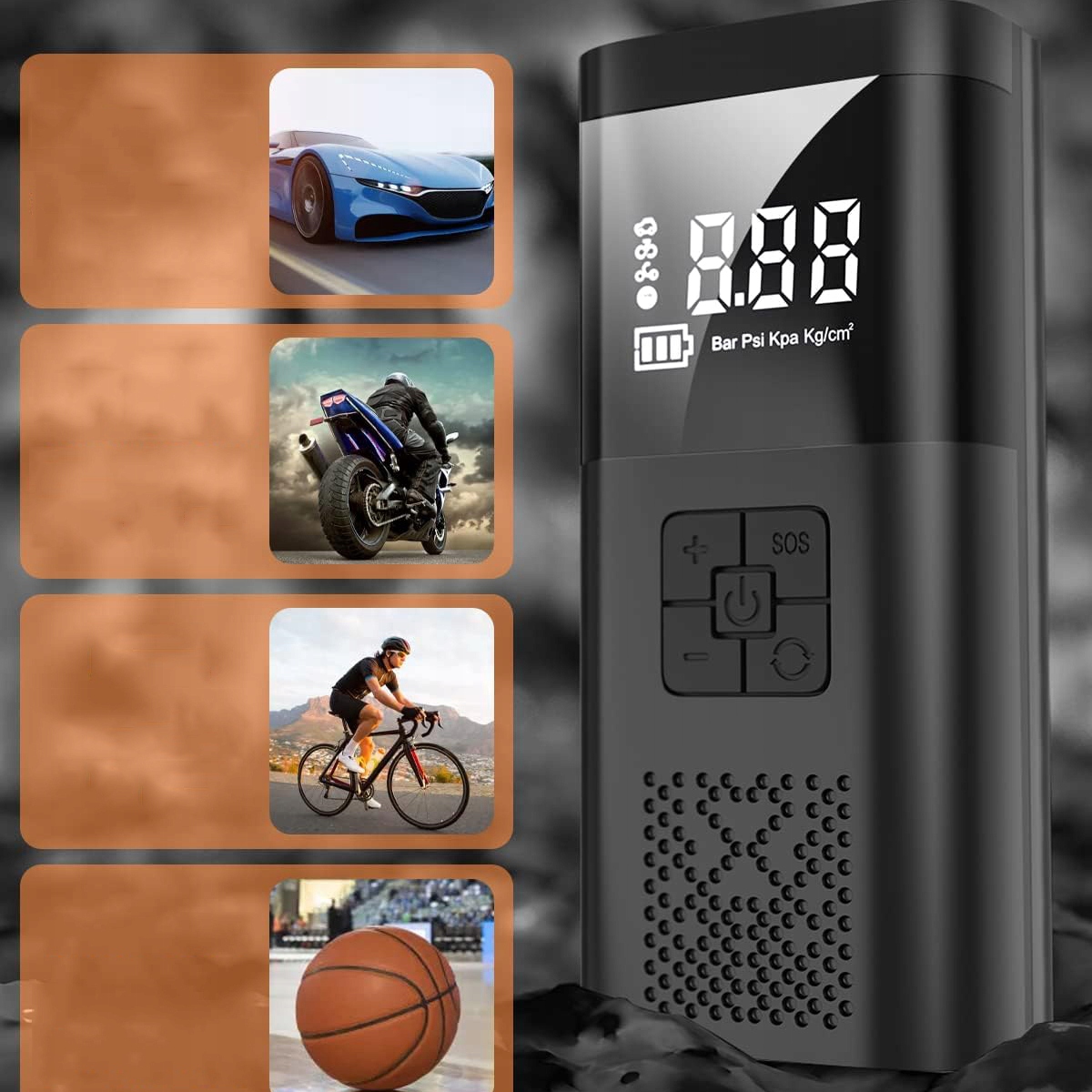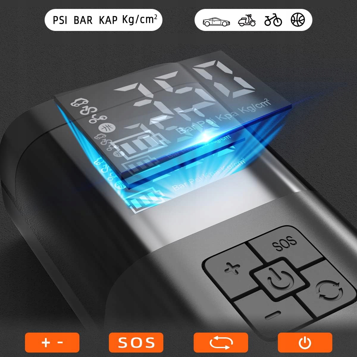 ✅ 【Простий у використанні】 Цей міні-компресор повітря потребує лише встановлення необхідного тиску. Коли значення тиску повітря буде досягнуто, повітряний насос автоматично припинить надування, щоб уникнути перезарядження. 1. Натисніть і утримуйте, щоб увімкнути. 2. Виберіть режим насоса. 3. Виберіть одиницю вимірювання тиску повітря (BAR, PSI, KPA, кг/см²), утримуючи кнопку перемикання режимів. 4. Установіть потрібне значення тиску в шинах і увімкніть перемикач.
