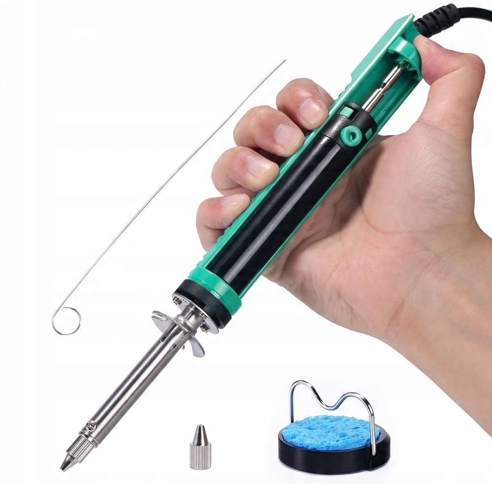 Професійне передсмоктувальне всмоктувальне всмоктування забобони, що використовуються для видалення пайки та інструментальних електронних компонентів. Пристрій дуже швидко досягає необхідної температури для роботи. Завдяки суцільній конструкції, всмоктування може бути ідеальним для дуже ефективної роботи за допомогою однієї руки.