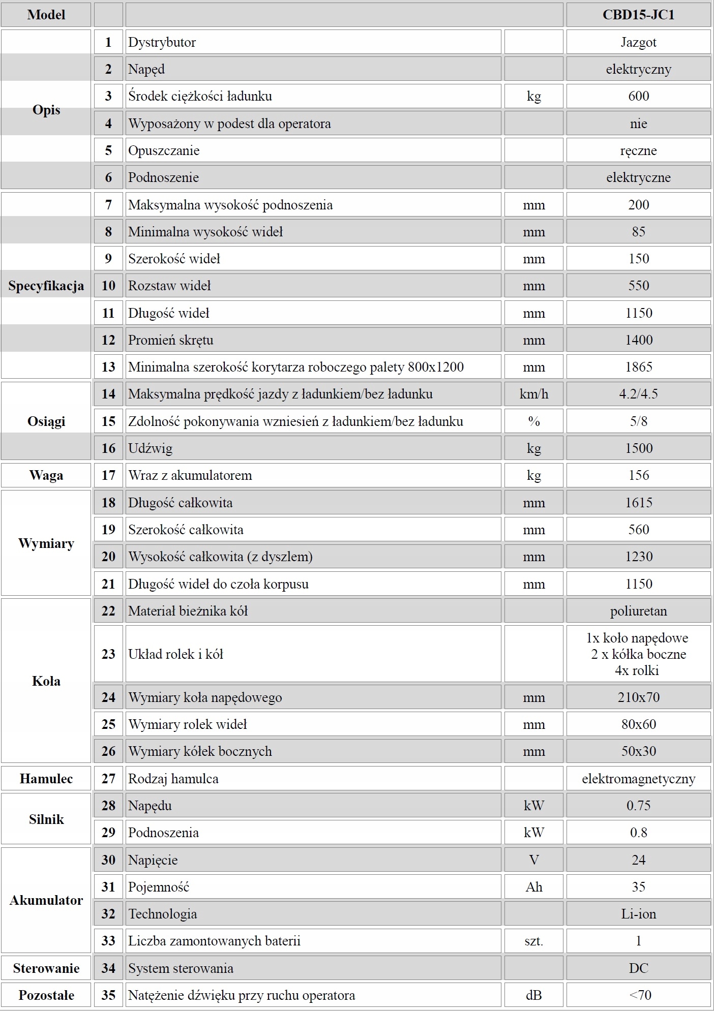 CBD 15 Палітра коляска -це розумний, надійний і простий -до використання пристрою. Невеликий радіус повороту і низька вага дали Палітеру унікальний характер. Його можна використовувати в вантажних ліфтах. Коляра працює тихо, не видаючи неприємного шуму. Завдяки великій потужності двигуна приводу, він радує його надзвичайну ефективність.