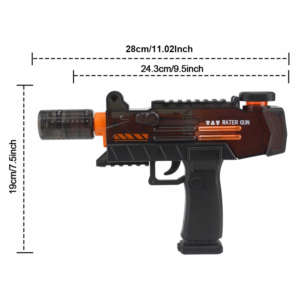 🔫 резервуар з водою: має великий бак 207 мл, можливо також підключити пляшку з водою діаметром 2,5 см, що підходить для більшості пляшок води, доступних на ринку, що продовжує час гри та зменшує кількість повеней.
