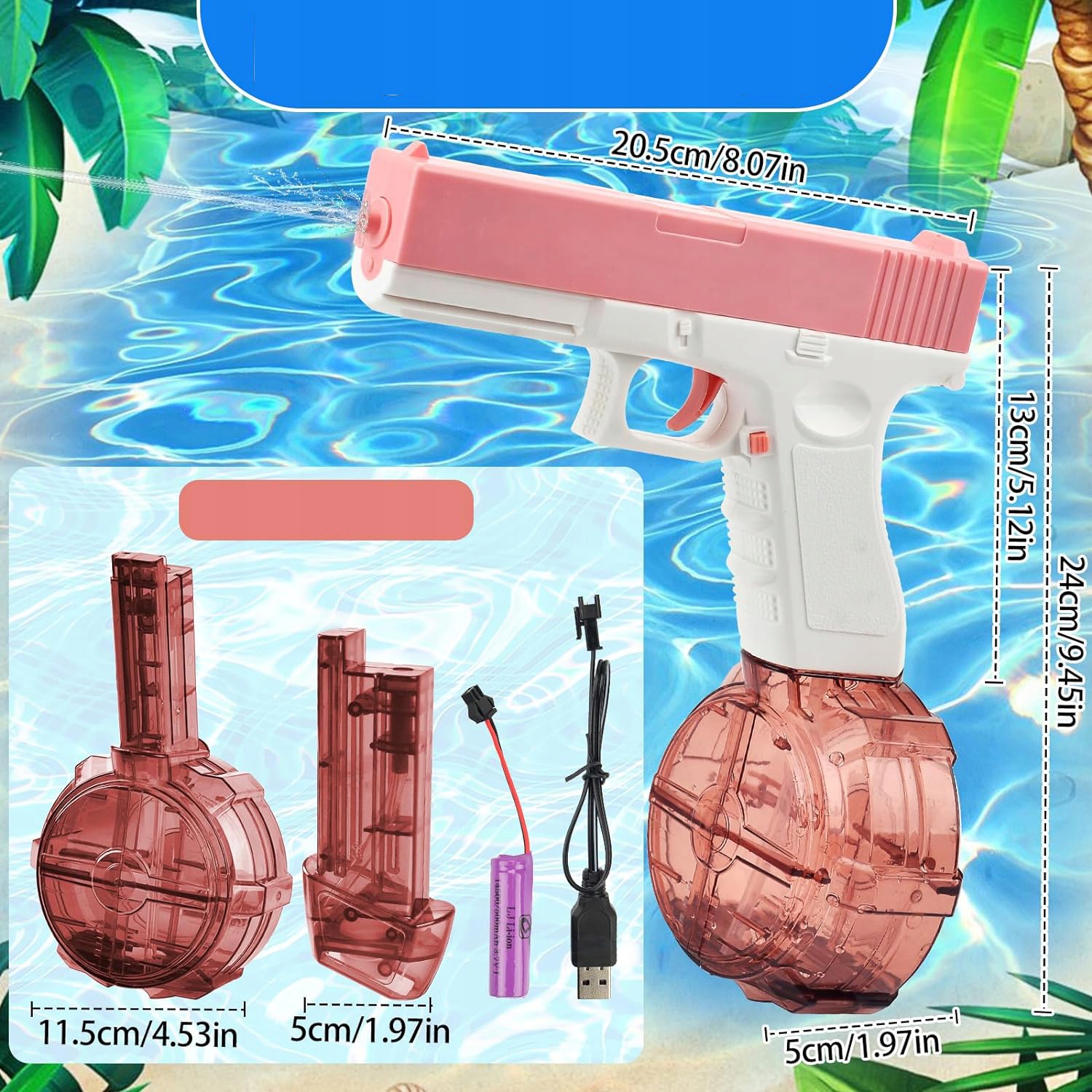 【рожева електрична водна пістолет прозорий резервуар для резервуара проти слизування ручки бака -бака для бойового набору в басейні】