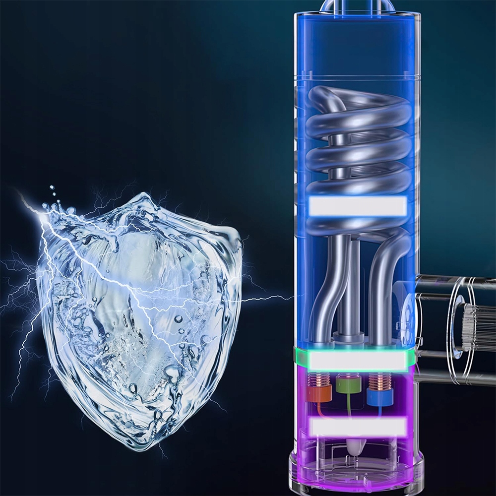 Оснащений нагрівальним елементом із нержавіючої сталі потужністю 3000 Вт, нагріває воду за 3 секунди, усуваючи необхідність попереднього нагрівання. Взимку температура води може сягати 45-55°C.