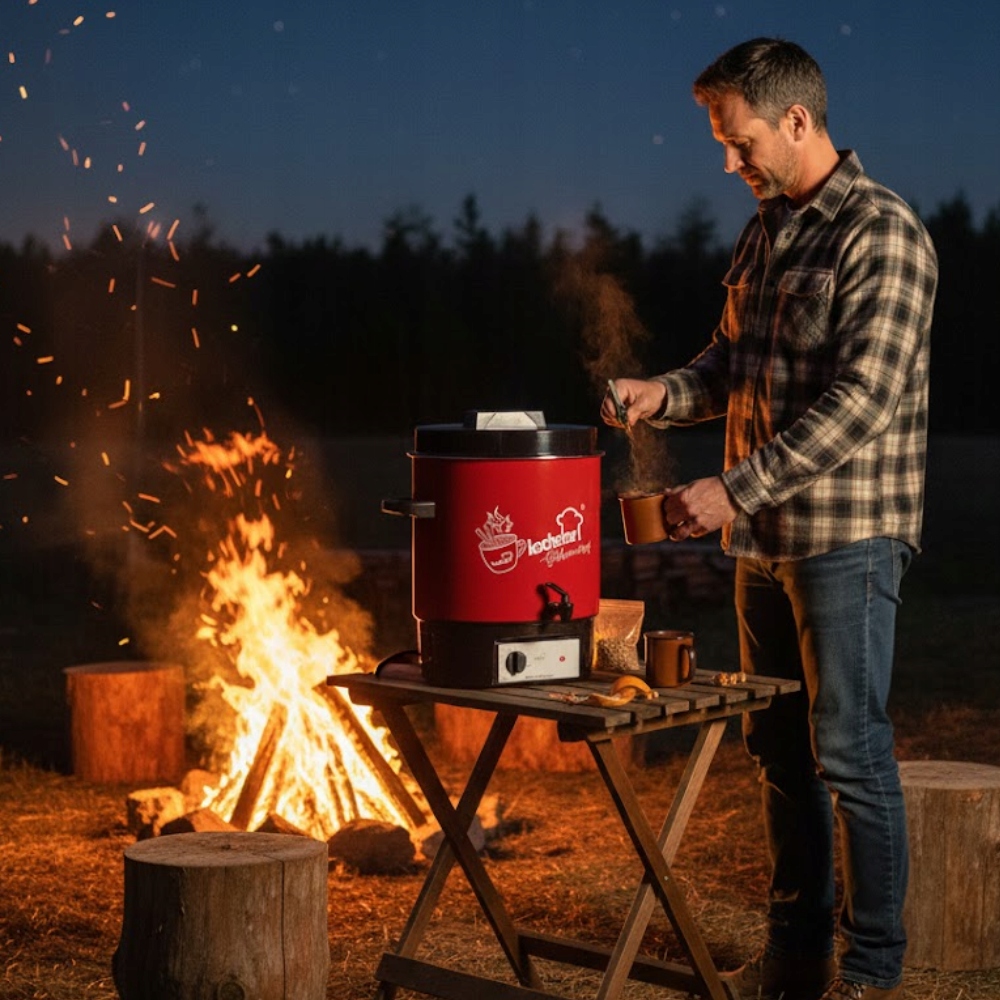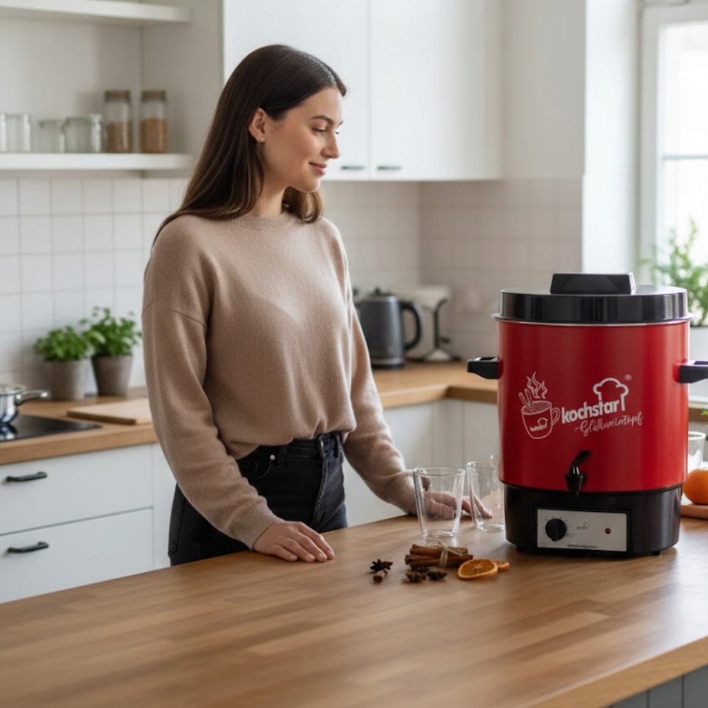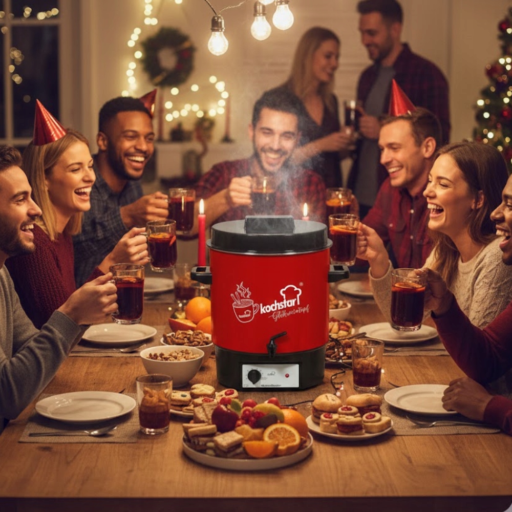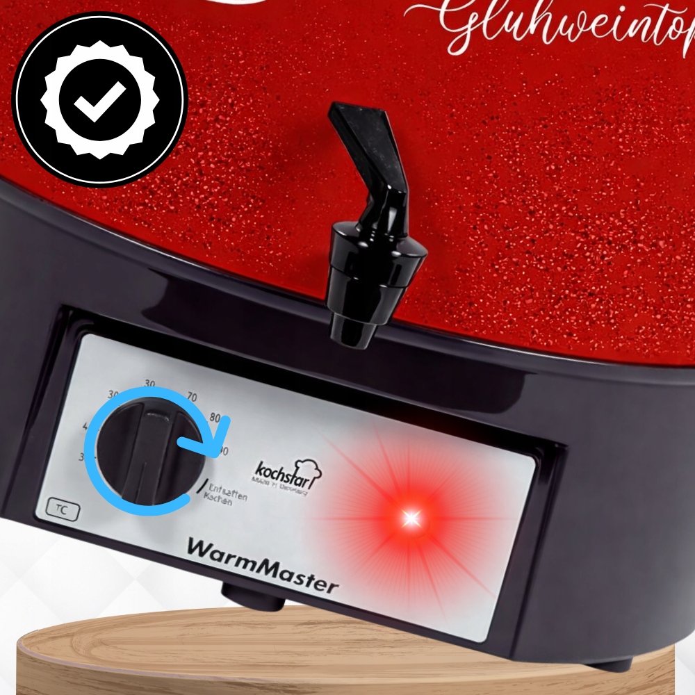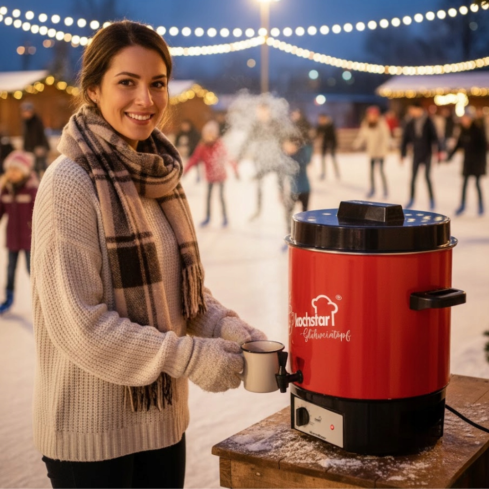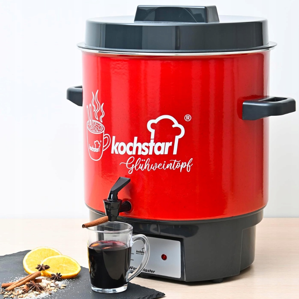 Стерилізатор KOCHSTAR Special Edition Hot Wine Decor також чудово працює як підігрівач напоїв і дозатор. Ароматний глінтвейн, розігріваючий глінтвейн або насичений смак чаю зберігаються при ідеальній температурі протягом тривалого часу, без ризику підгоряння. Завдяки точному контролю температури і зручному крану подача напоїв швидка, чиста і надзвичайно комфортна - як вдома, так і на ярмарках, заходах, фестивалях і сімейних зустрічах. Завдяки стильному візерунку Hot Wine Decor пристрій не тільки чудово працює, але й чудово виглядає, привертаючи увагу гостей та клієнтів.