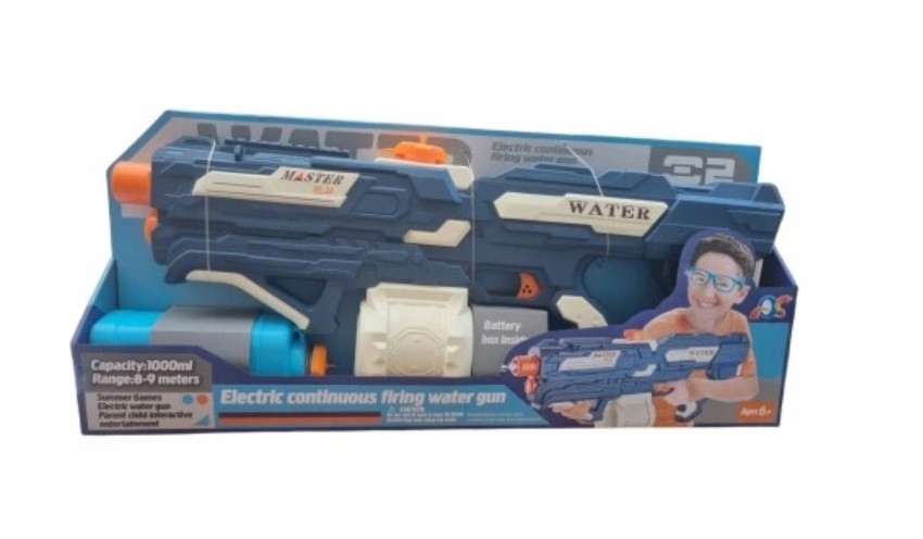 Представлена водна зброя в синіх кольорах з елементами білого та помаранчевого. Боєприпаси або вода є безпечними, тому ви можете почати сутичку з родиною чи однолітками. Необмежена забава з друзями.
