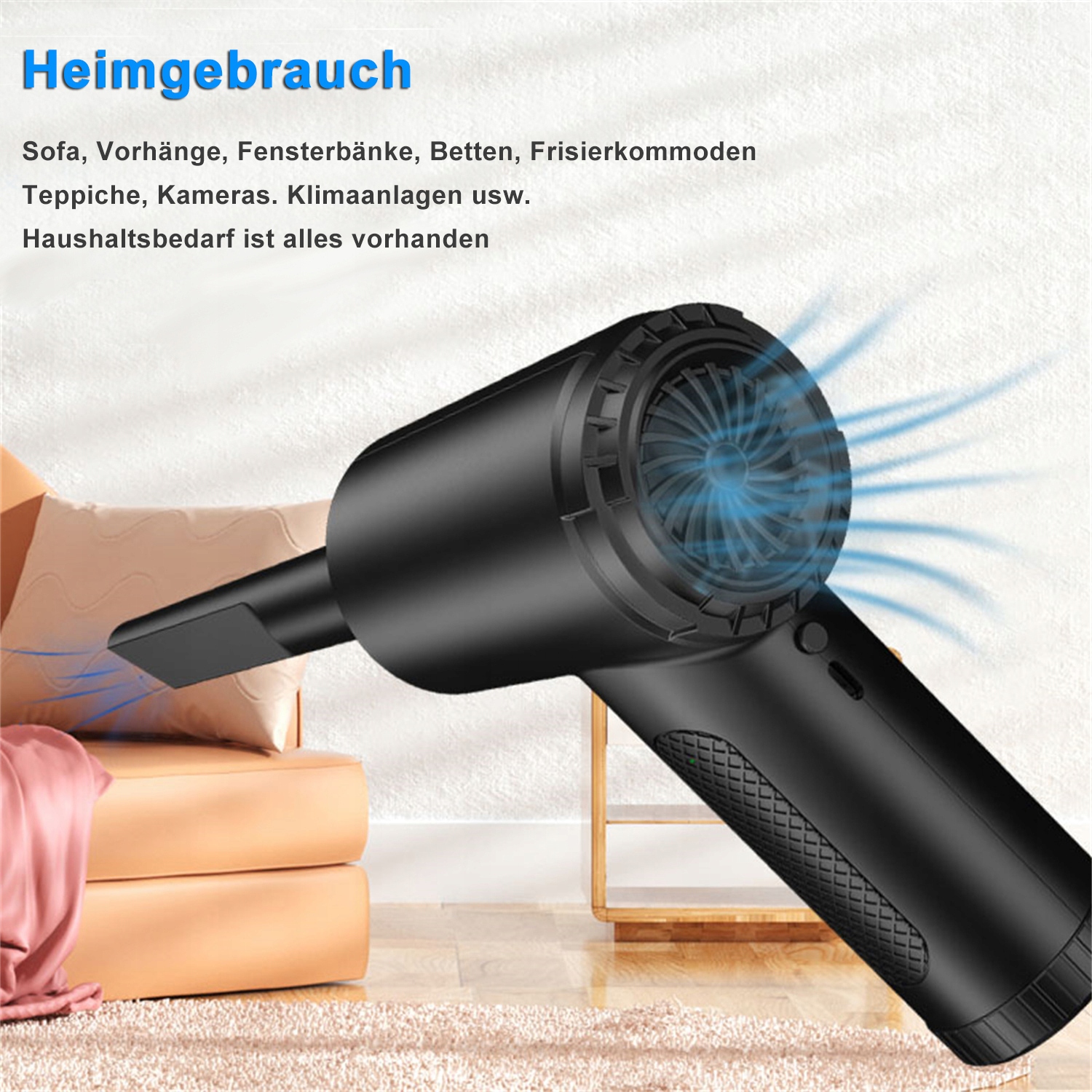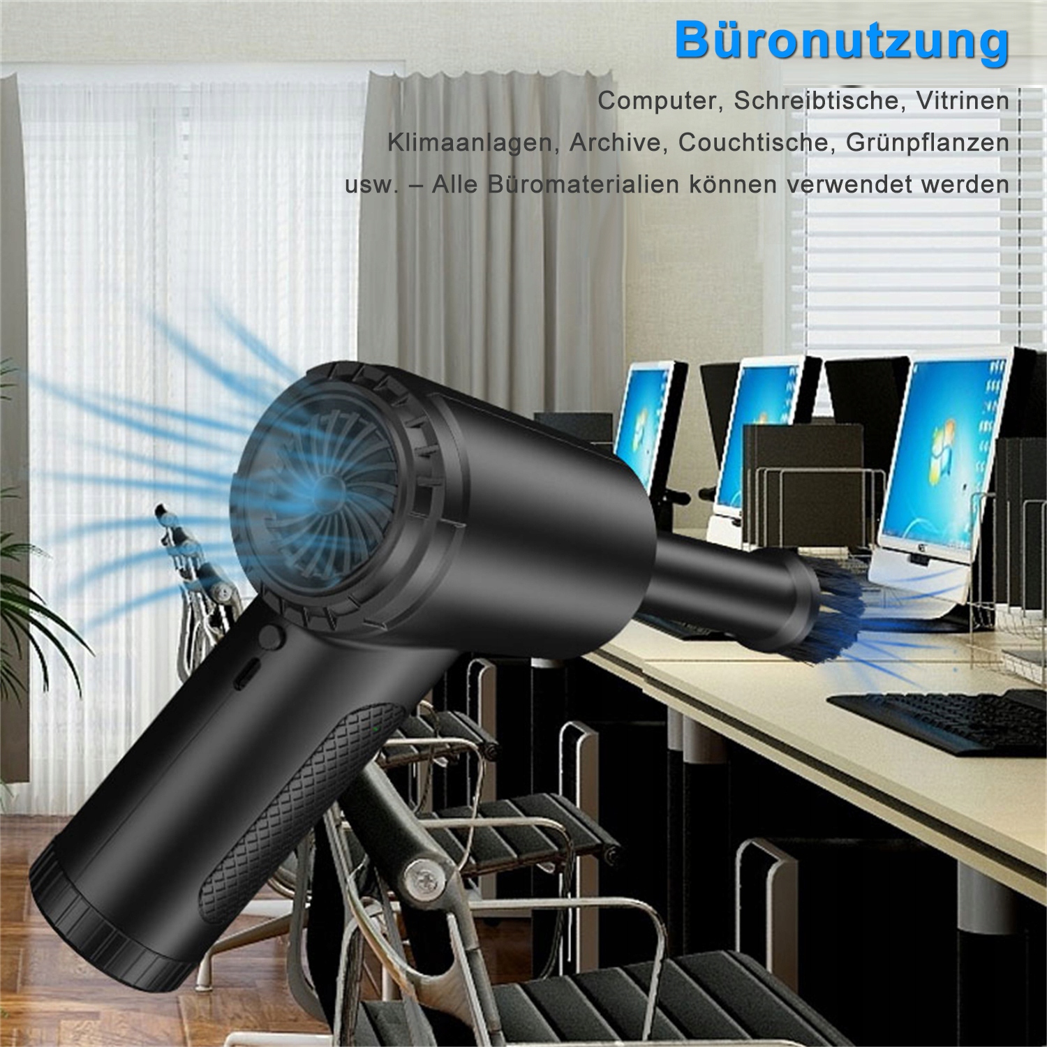 Електричний пиловий повітродувка з 3 швидкістю 51000 об/хв, стисненим розпилювальним повітрям, набором для очищення клавіатури з акумулятором 6000 мАг, стисненим повітряним очищувачем повітря з комп'ютерною щіткою/диваном/автомобілем/клавіатурою/камерою, чорним повітропроводом бездротового пилу забезпечує повітря високого тиску для видалення пилу і може генерувати дуже міцний повітряний струм. Практично для використання вдома, в офісі або в машині. Сильний вітер полегшує прибирання. Простий і практичний дизайн, зручний для утримання, полегшує очищення.
