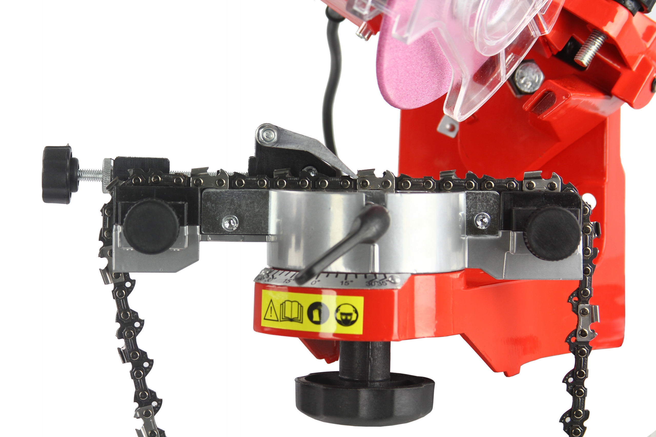 Він оснащений натягувачем і шкалою для заточування ланцюга, що дозволяє виконувати дуже точне заточування.