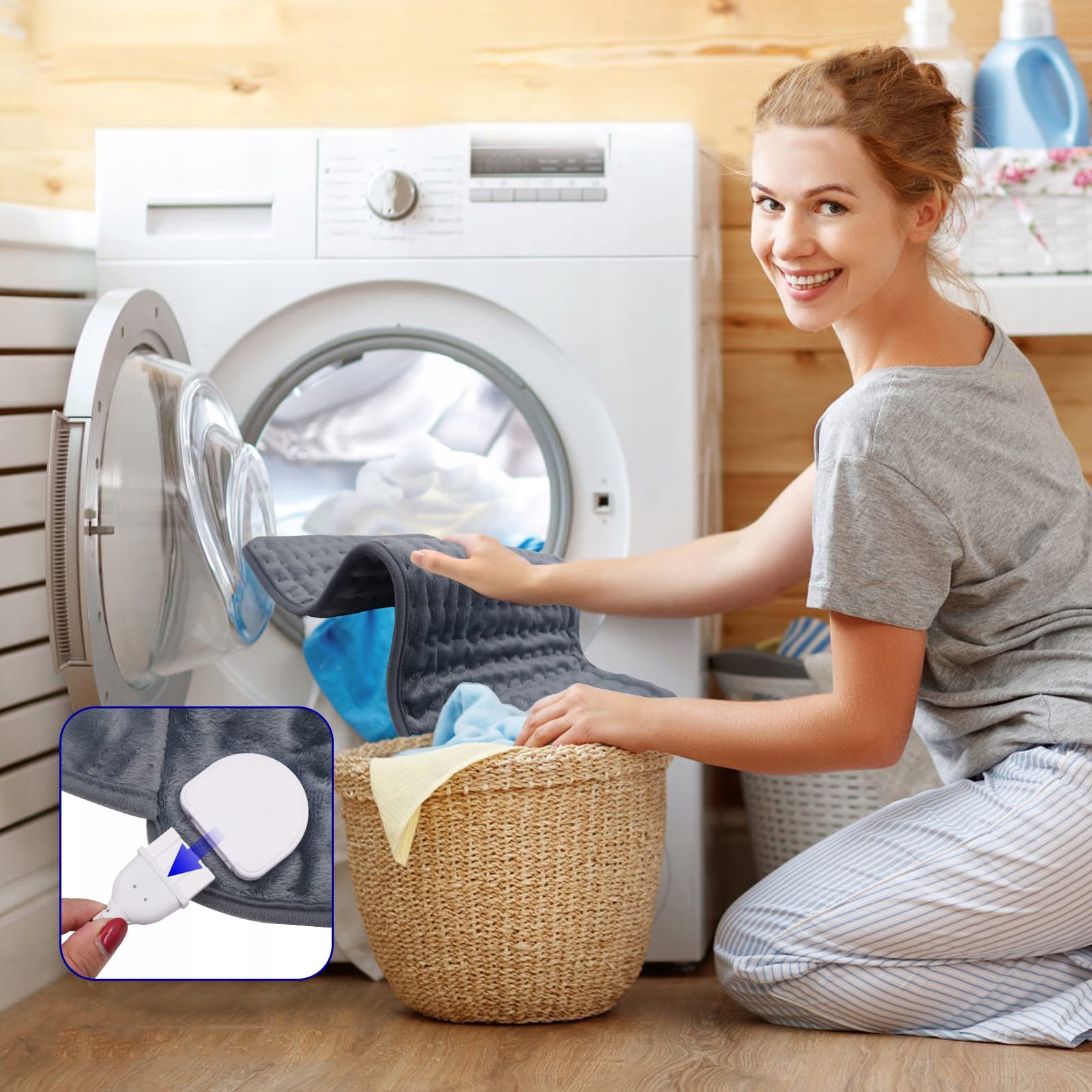 - З’єднання живлення грілки є водонепроникним, коли вилку грілки від’єднати від панелі керування, грілки можна прати в машині, тож вам не доведеться турбуватися про чищення.