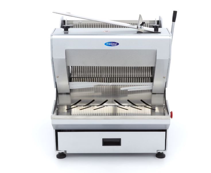 , виготовлений із покритої сталі, цей хліб - це міцна машина і призначений для різання різних типів хліба. Ця машина має зубчасті леза з нержавіючої сталі, розташовані з інтервалом 12 мм.