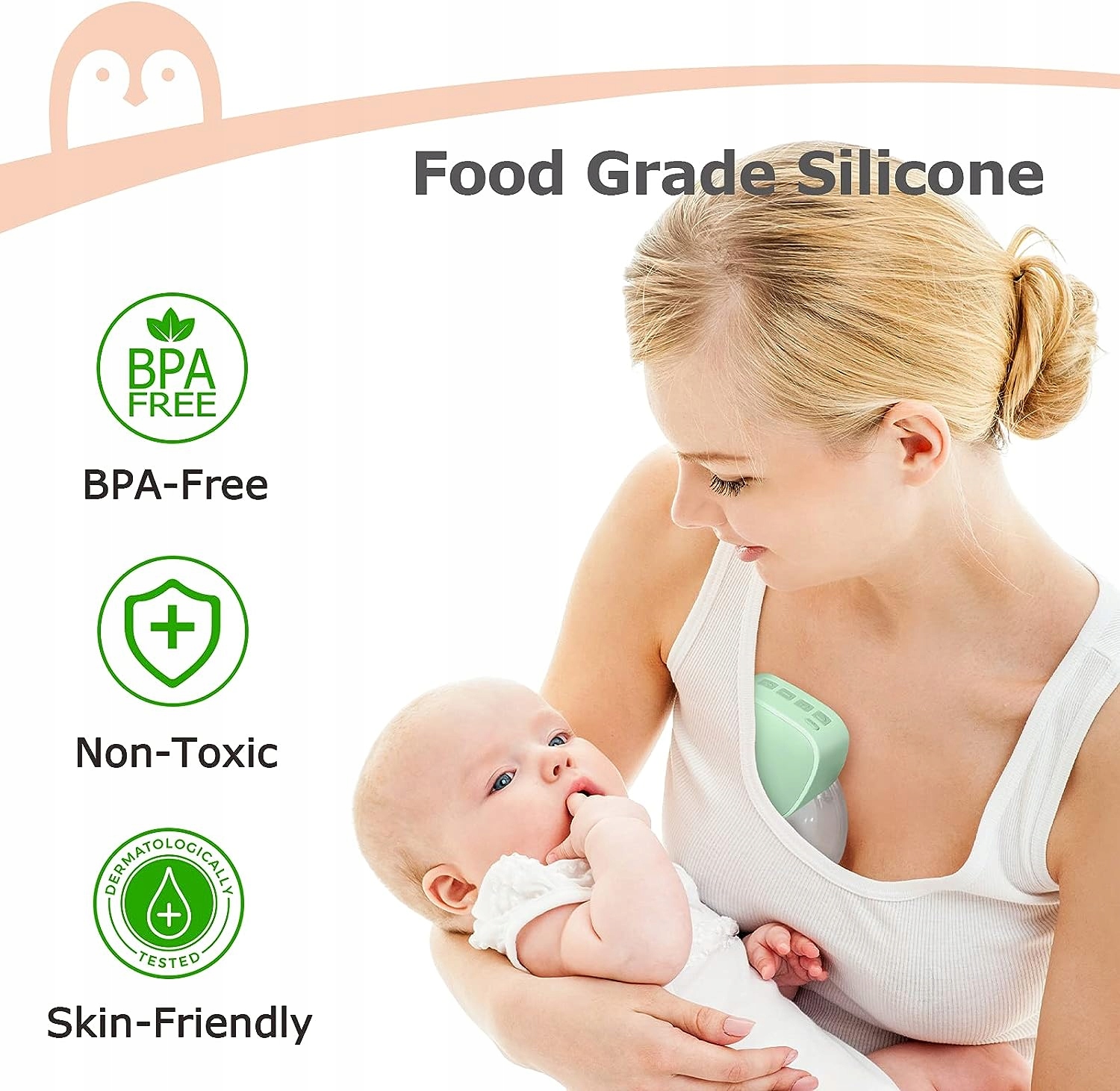 - Харчовий силікон безпечний як для вас, так і для вашої дитини, дає вам спокій, знаючи, що ваше молоко зціджується безпечно та гігієнічний спосіб.