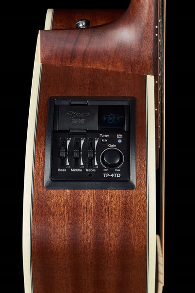 Вбудована система попереднього підсилювача Takamine TP-4TD забезпечує вбудований тюнер із трисмуговим еквалайзером і регулюванням посилення для чудового підсилення та універсальності.
