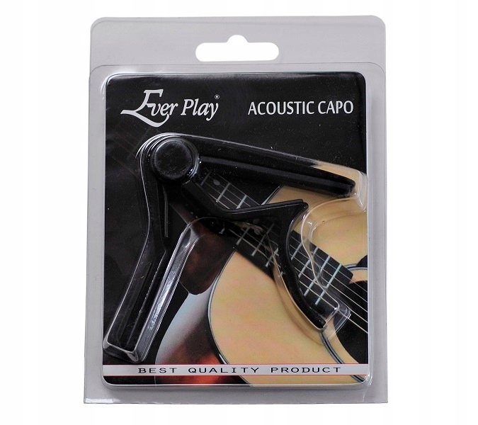 Легкий, міцний капо EVER PLAY чорного кольору з міцною та довговічною пружиною, що забезпечує належний тиск усіх струн на гриф.