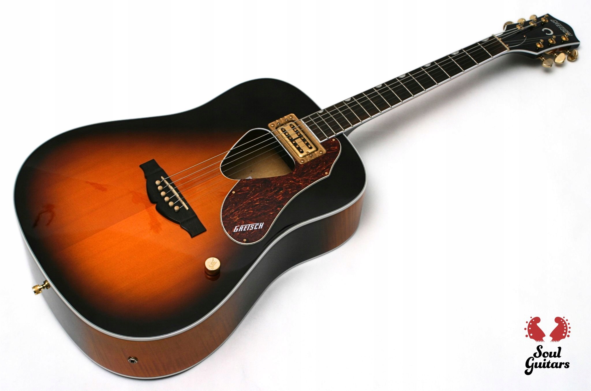 Gretsch G5031FT, виготовлена в Індонезії в 2019 році, незвичайна електроакустична гітара, оснащена хамбакером Gretsch Fideli'Tron. Звуковий отвір у формі трикутника, надзвичайно стильно оформлені гачки для ременя та ручка потенціометра, а також позолочена фурнітура додають цьому інструменту оригінальності. Все це не тільки виглядає, але, звичайно, чудово звучить :)
