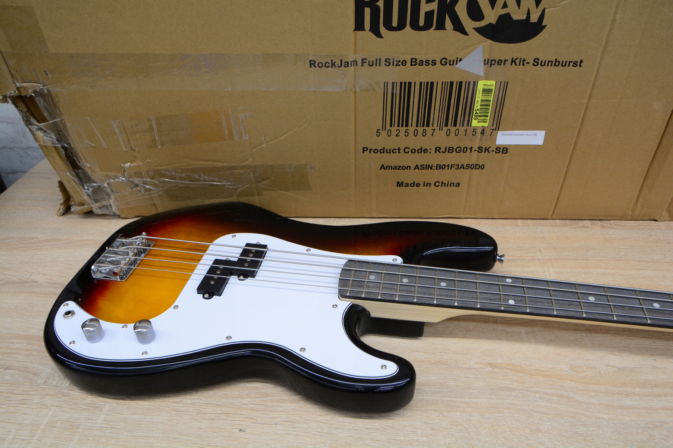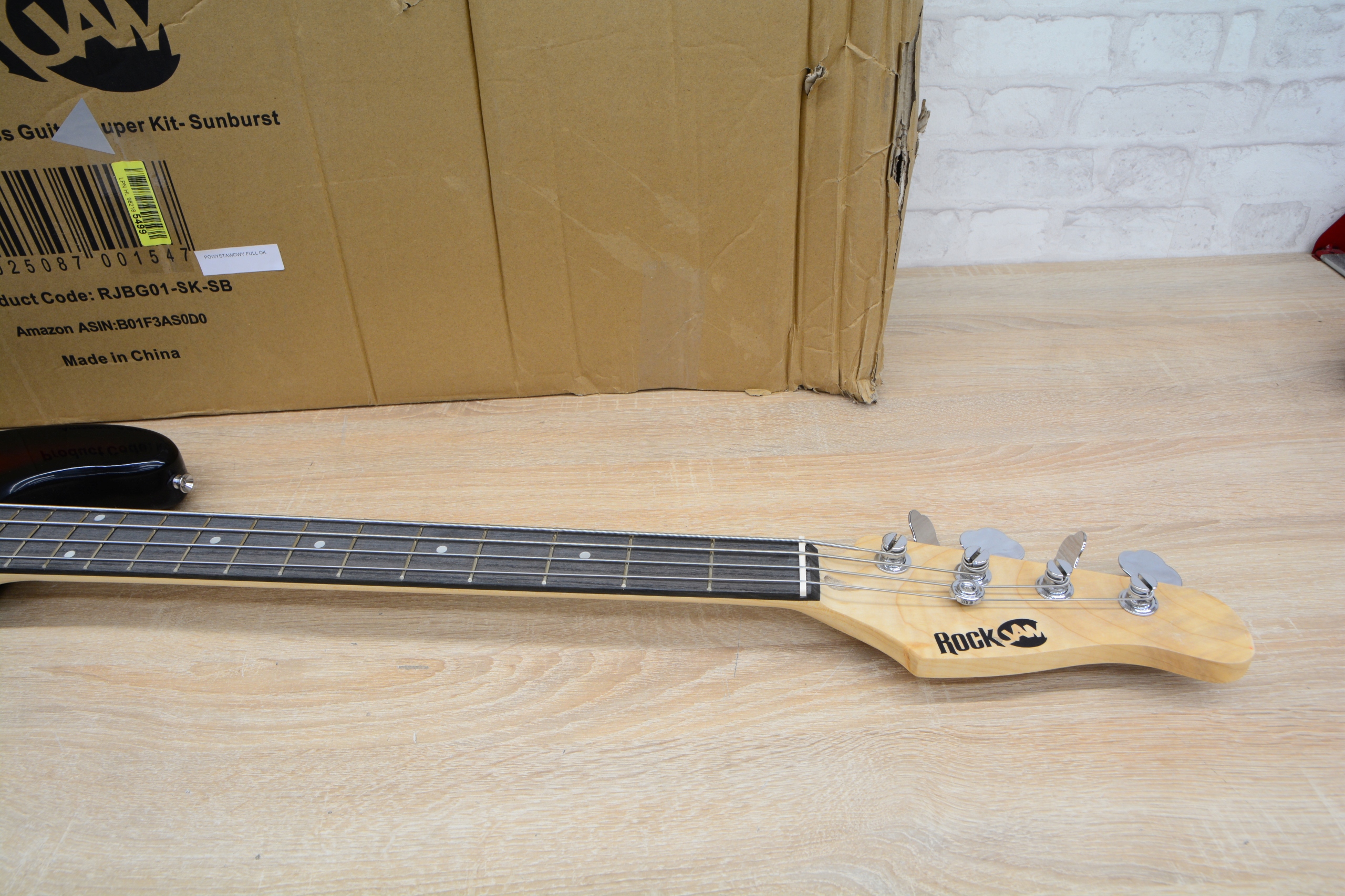 Виставковий набір RockJam RJBG01-SK-SB Повнорозмірний набір для бас-гітари з гітарним підсилювачем Гітарний тюнер Підставка для гітари Сумка для гітари Sunburst та аксесуари