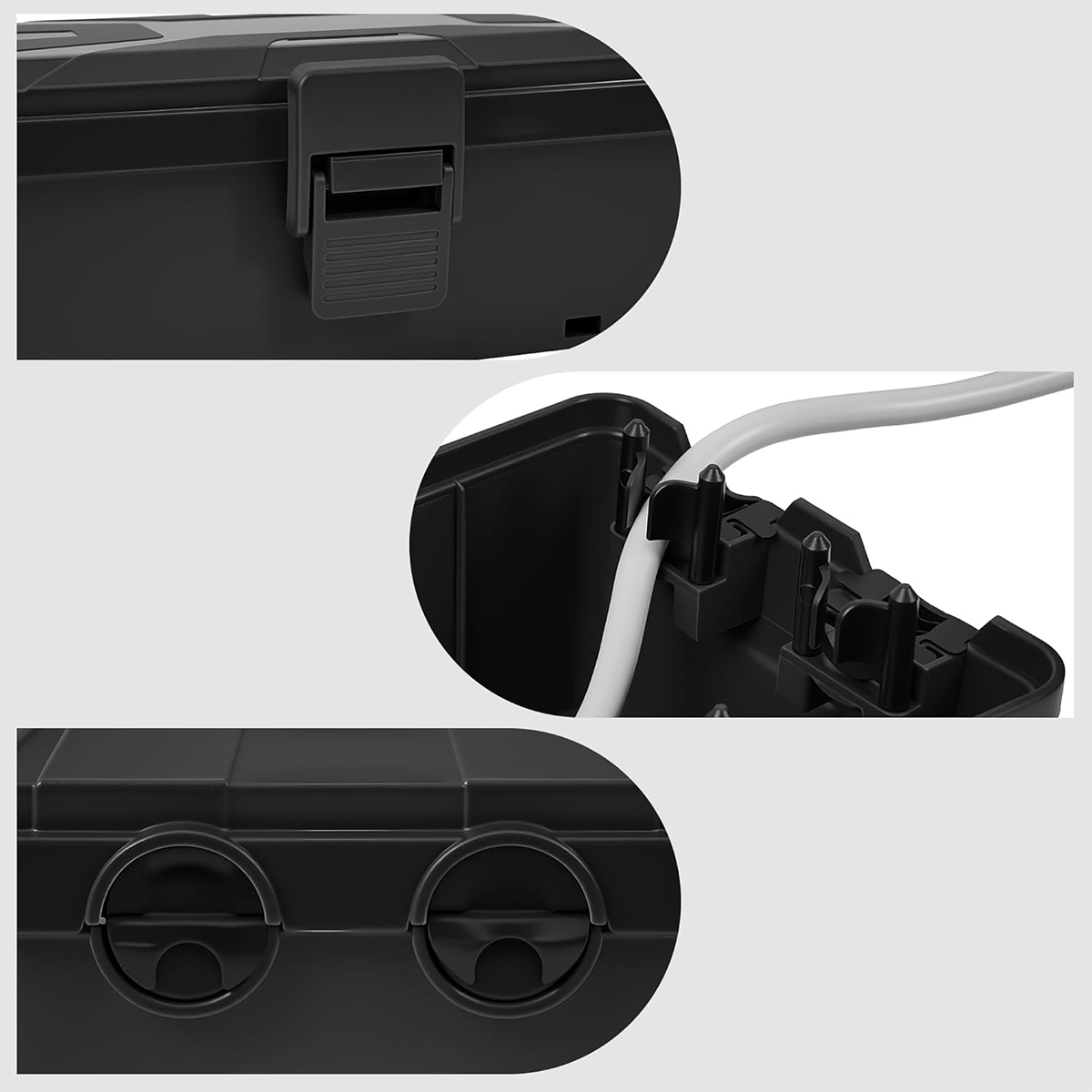 ✅Міцний і міцний: водонепроникна кабельна коробка виготовлена з міцного PP матеріалу та захищає зовнішні вилки та роз’єми від ураження електричним струмом. Гачки всередині коробки забезпечують натяг кабелю та запобігають ослабленню вилки. (Примітка: наша коробка вміщує лише 4-5 заглушок, уважно перевірте розмір заглушки перед покупкою!!!)