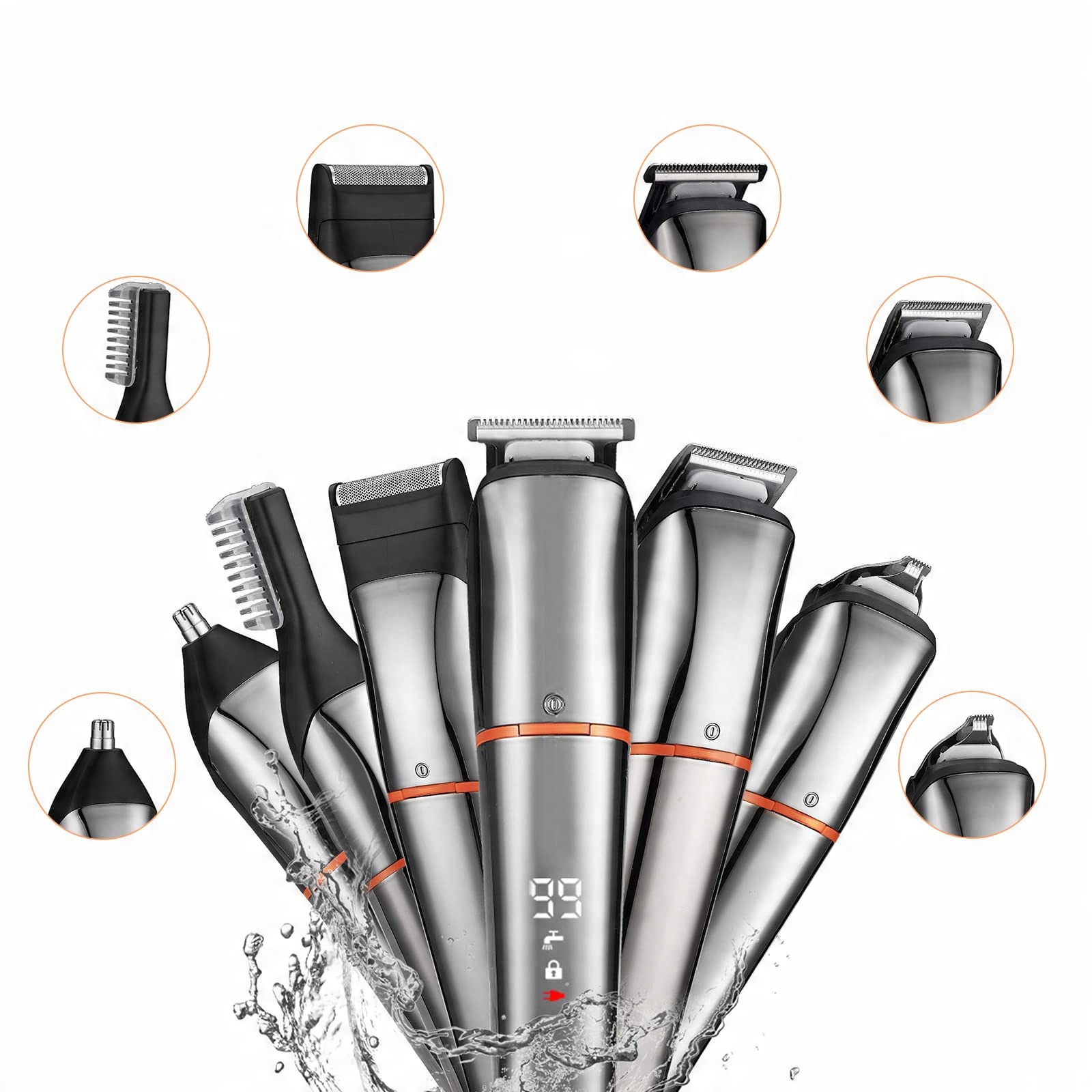 Машинка для стрижки волосся, тример для бороди, електричний бездротовий тример для волосся в носі 6 в 1, чоловічий тример для бороди для обличчя та тіла, водонепроникний світлодіодний дисплей, перезаряджуваний USB, IPX7