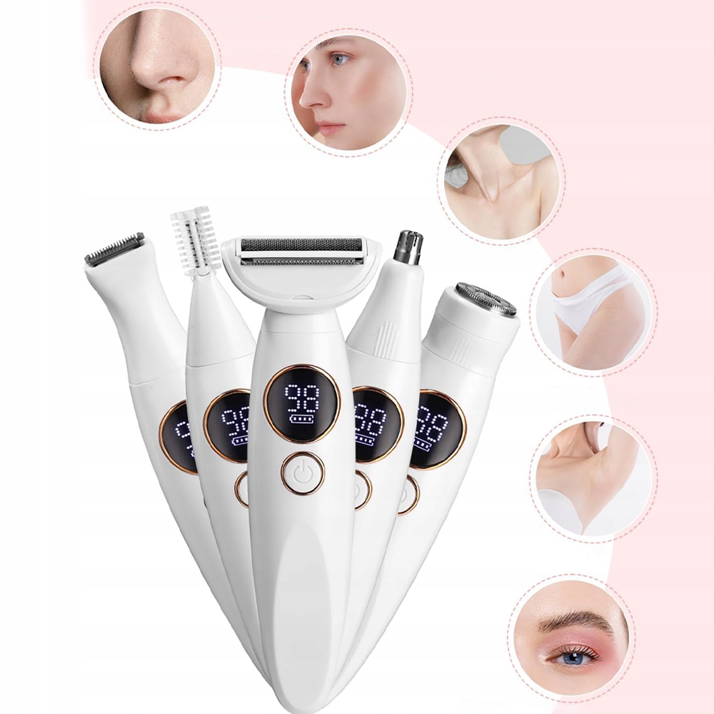 Електробритва з 5 змінними головками, РК-дисплей, миється, для пахв, рук, ніг, брів