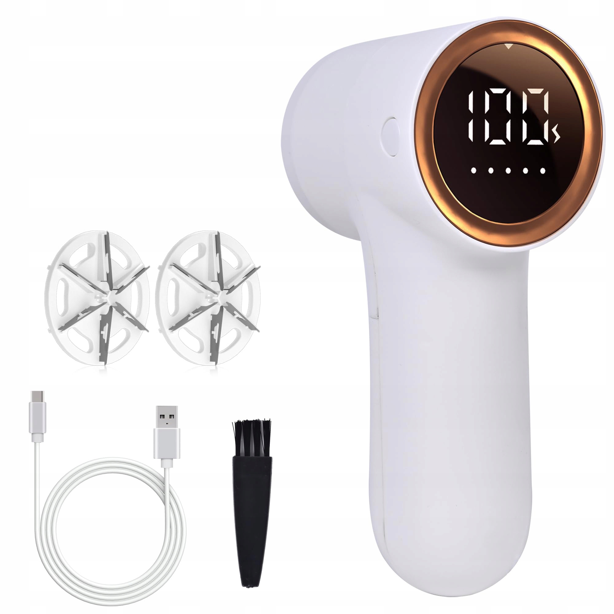 Електричний бездротовий засіб для видалення ворсу: набір включає: електричний засіб для видалення ворсу*1, запасне лезо*1, зарядний кабель Type-C*1, щітку для чищення*1, посібник користувача*1. Електричний ворсинчальник має 5 регульованих ступенів швидкості. Світлодіодний індикатор показує рівень заряду батареї та швидкість. Більша головка забезпечує більшу площу та ефективне видалення ворсу.