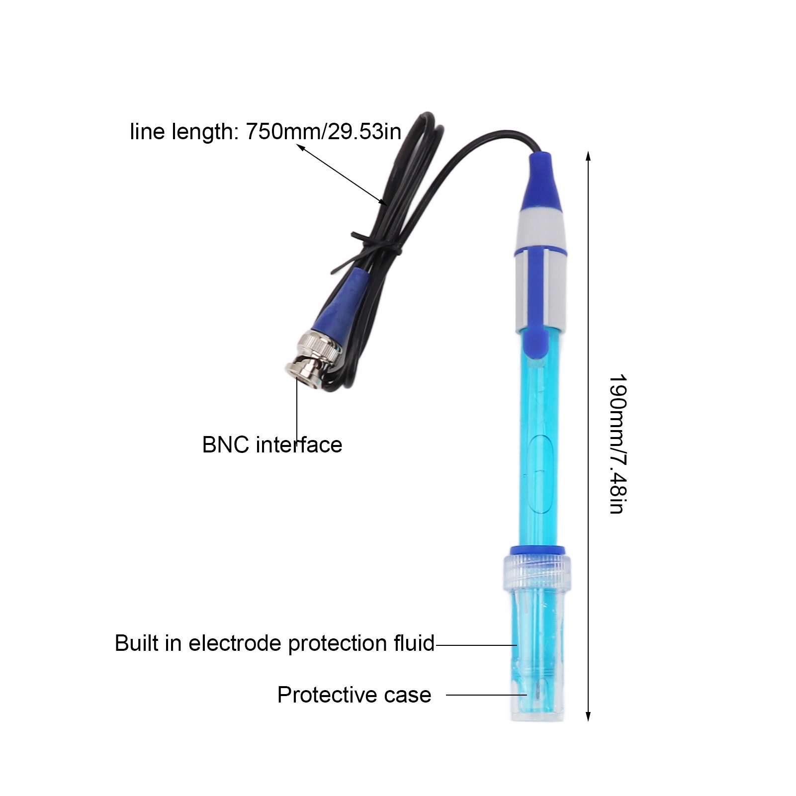 Довжина електрода: прибл. 19 см/7,48 дюйма (без кабелю) (поставляється з рідиною)