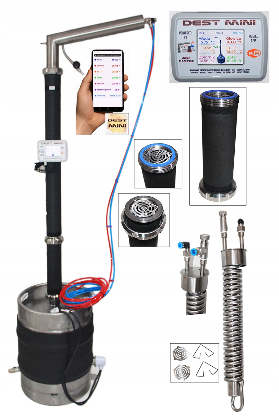 Dest Mini - це передовий, компактний прилад, створений для ентузіастів і професіоналів, що займаються ректифікацією та дистиляцією. Завдяки цьому ви маєте повний перегляд температур у колонці – з будь-якого місця та в будь-який час.