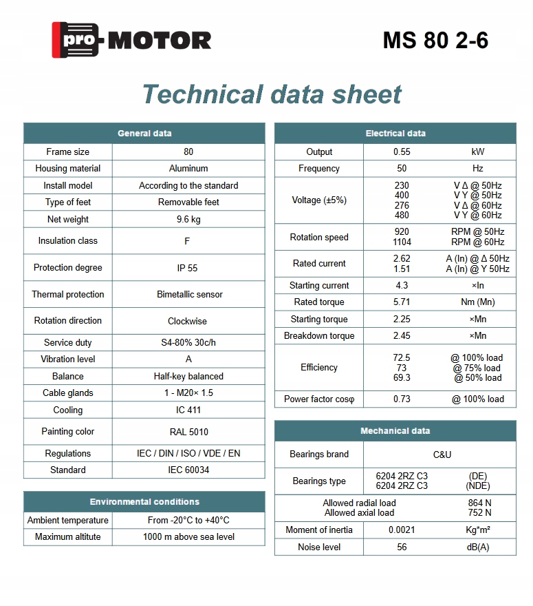 Електродвигун Promotor MS 0,55кВт 900 об/хв. 80 B5