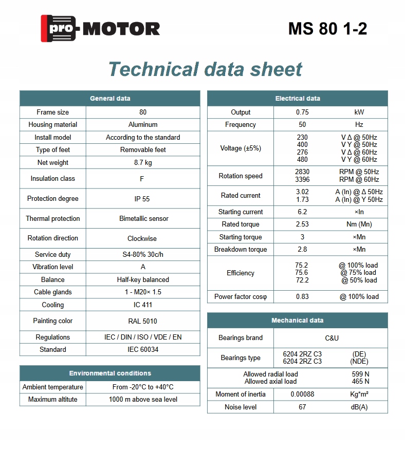 Просматривая «Електродвигун Promotor MS 0,75кВт 2800 об/хв. 80 B3», вы можете быть уверены, что данный товар из каталога «Двигатели» будет доставлен из Польши и проверен на целостность. В цене товара, указанной на сайте, учтена доставка из Польши. Внимание!!! Товары для Евросоюза, согласно законодательству стран Евросоюза, могут отличаться упаковкой или наполнением.
