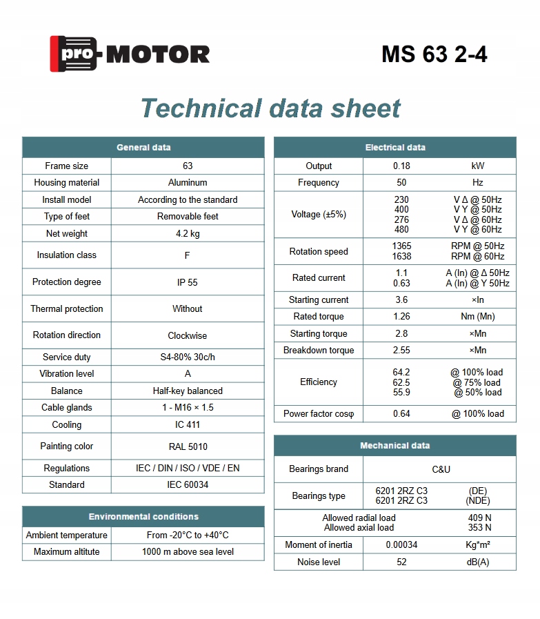 Електродвигун Promotor MS 0.18кВт 1400 об/хв. 63 B5
