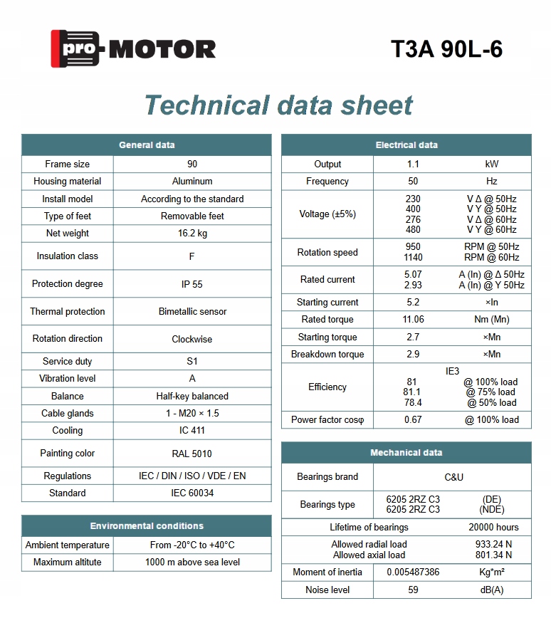 Електродвигун Promotor T3A 1.1кВт 900 об/хв. 90 B5