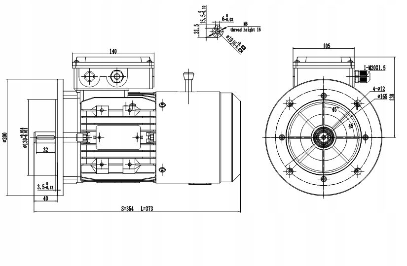 Електродвигун з гальмом Promotor MSH 0,75кВт 1400 об/хв. 80 B5