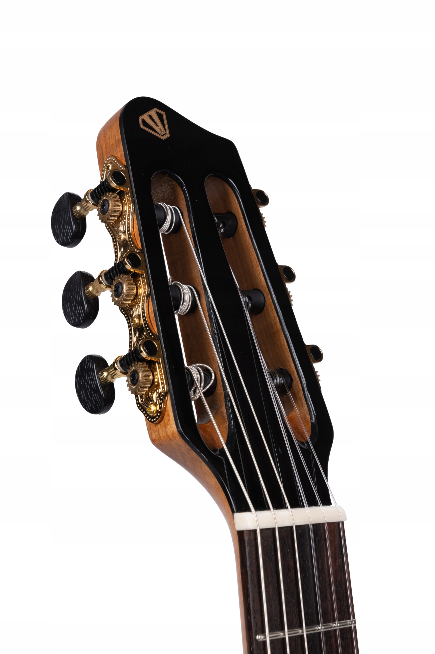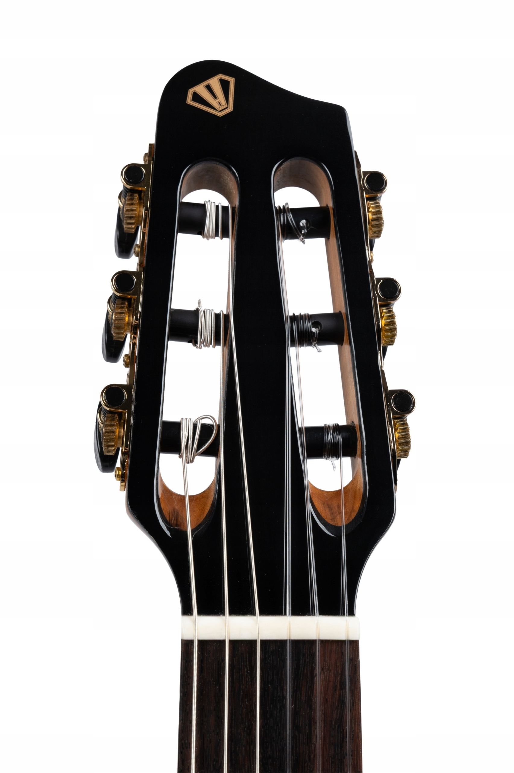 Технічні характеристики • Електрогітара • Корпус: окуме • Фасад: ялина • Шия: печений клен • Гриф: Лавр • Профіль горловини: "C" • Масштаб: 650 мм • Кількість ладів: 22, 2,4 мм лади з нержавіючої сталі Jumbo • Ширина нульового порога: 48 мм • Нульові лади: Ox Bone • Перетворювач: активний акустичний п'єзо HN78 • Елементи керування: 1x гучність, 1x тон • Фурнітура: золото • Тюнінг механізмів: класичний