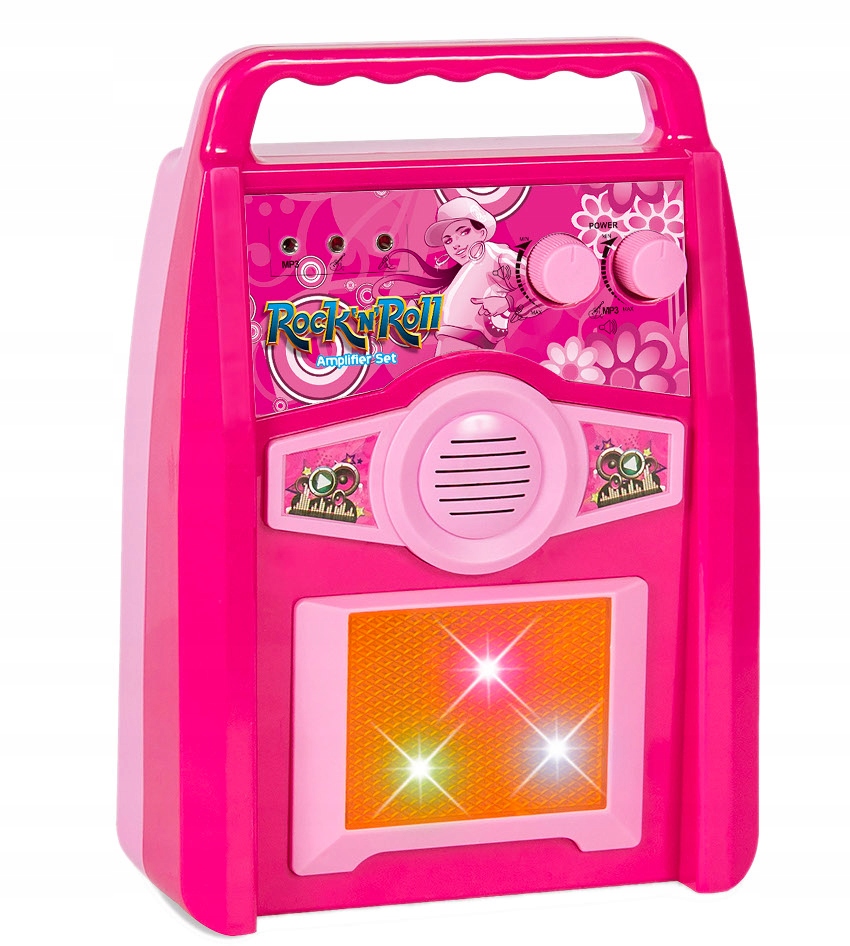- Кнопка ON/OFF в мікрофоні дозволяє в будь-який момент вимкнути і ввімкнути його, щоб дитина могла почати співати у вимкнений мікрофон, а коли наважиться, включити його і влаштувати справжній концерт. Гучність звуку можна регулювати за допомогою ручок, розташованих на підсилювачі.