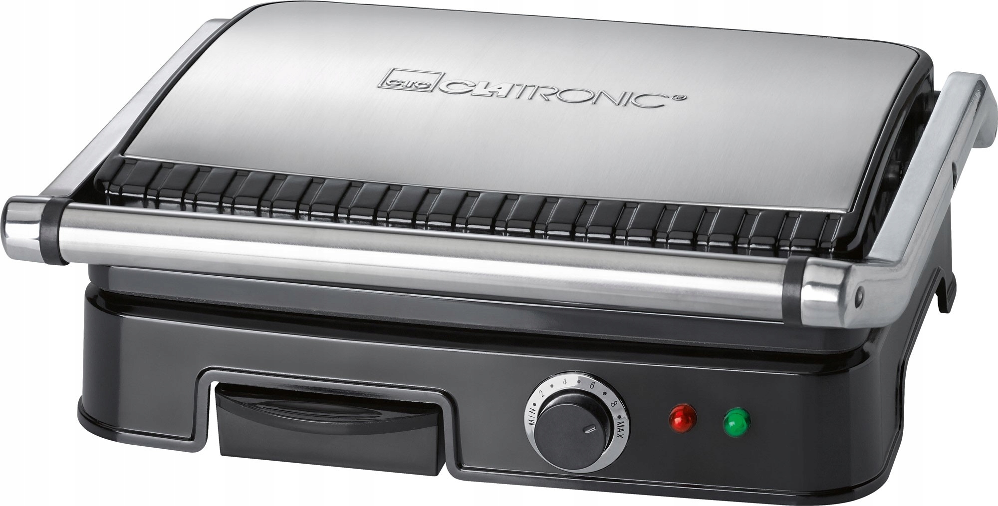 Clatronic KGце пристрій, завдяки якому ви можете готувати страви на грилі цілий рік, не виходячи з власної кухні. Завдяки робочій поверхні розміром 29,5 х 23,5 см можна запікати м'ясо, рибу та овочі. Страви на грилі корисніші та смачніші, тому що готуються без додавання жиру. Глибокі канавки дозволяють стікати надлишки соку та жиру в спеціальний знімний ящик. Додатково обсмажування ведеться з двох сторін одночасно. Висока потужність пристрою (2000 Вт) дозволяє швидко готувати страви.