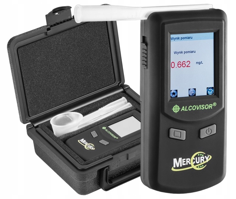 Alcovisor® Mercury — це один із найсучасніших електрохімічних аналізаторів вихлопних газів із сенсорним екраном TFT. Завдяки використанню платинового електрохімічного датчика він забезпечує надзвичайно точні результати вимірювань. Роздруківка експертизи, виконаної за допомогою цього пристрою, може бути доказом у судових справах*.
