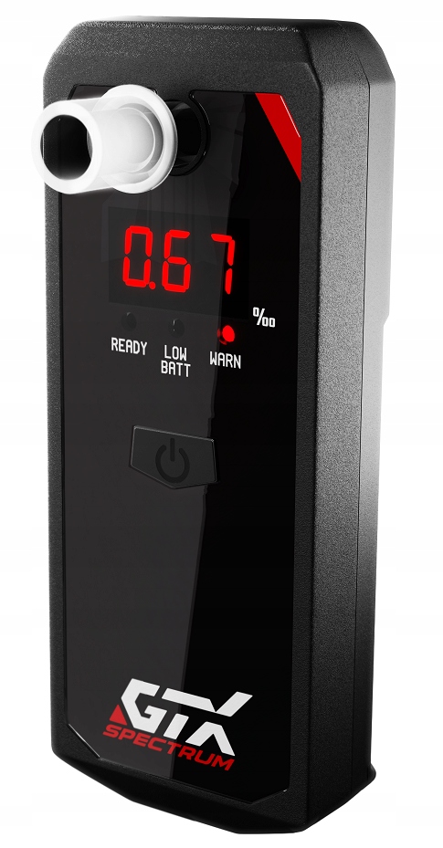 GTX Spectrum — це алкотестер із широким спектром вимірювань — він вимірює від 0 до 4 проміле. Це електрохімічний алкотестер із платиновим датчиком спирту, який гарантує надійне вимірювання з низькою похибкою.