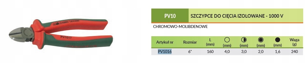 Оплачивая «Електроізоляційні кліщі PV1016 160 мм» данное изделие из «Режущие» вы можете быть уверены, что после оформления заказа, доставки в Украину, вы получите именно то, что заказывали, в оговоренные сроки и европейского качества.