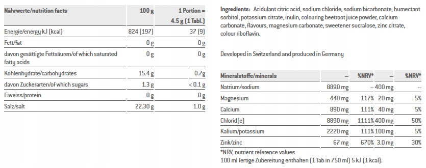 Якщо ви тренуєтеся, щоб покращити метаболізм або контролювати свою вагу, низьке споживання вуглеводів може бути ефективним. Таблетки SPONSER® ELECTROLYTIC компенсують електроліти (натрій, хлорид, магній, калій і кальцій), які втрачаються з потом. Активізує жировий обмін і заміщає мінерали практично без калорій. Інтенсивна діяльність і тривалі тренування вимагають достатнього споживання вуглеводів. Тому все ще рекомендуються енергетичні спортивні напої, такі як COMPETITION або ISOTONIC з помірним вмістом вуглеводів 60-80 г / 1000 мл.