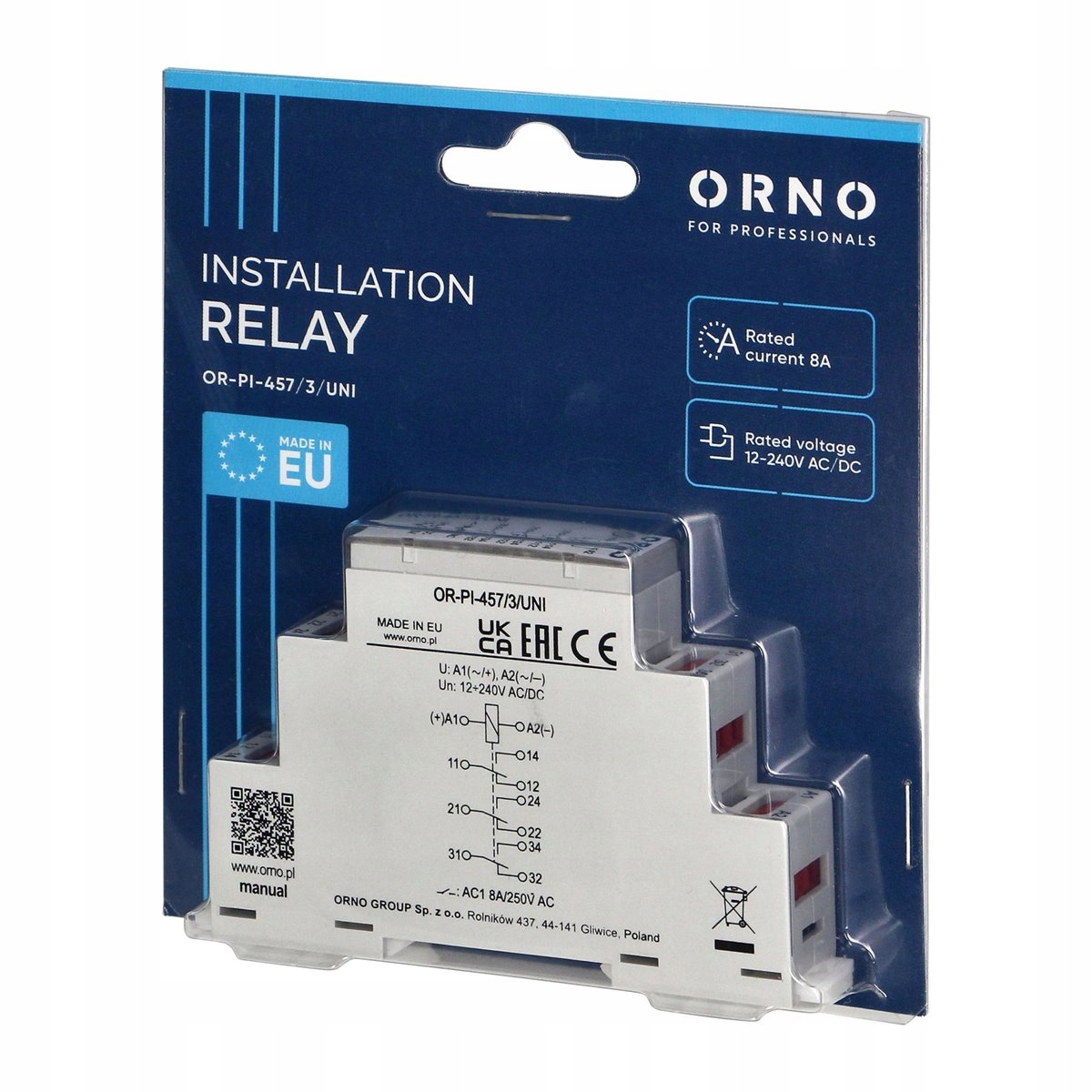 Інсталяційна електромагнітна реле 3p 12-230V AC/DC 8A