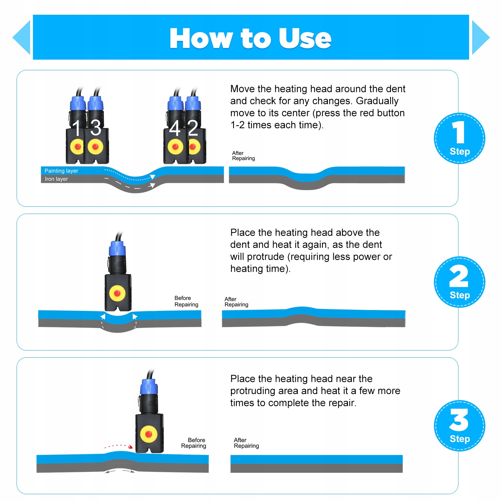 може легко усунути різні круглі та гладкі вм'ятини, що підходять для косметичних магазинів автомобілів, машинних майстерень, магазинів 4S та ремонту вдома.