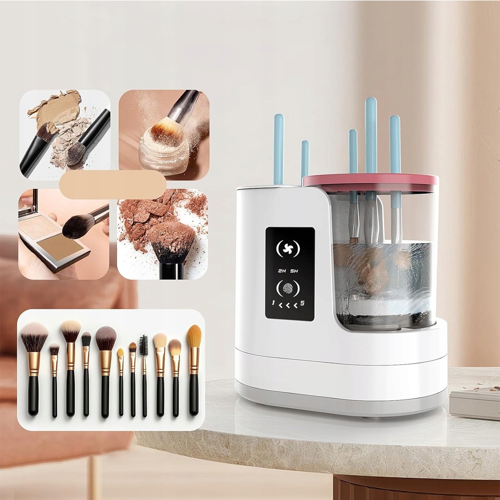 Пристрій поєднує в собі два етапи: спочатку автоматичне прання, потім сушіння. Вбудована функція сушіння теплим повітрям (на вибір 2 або 5 годин) гарантує, що кисті ідеально сухі та готові до використання. Це гарантія повної гігієни.