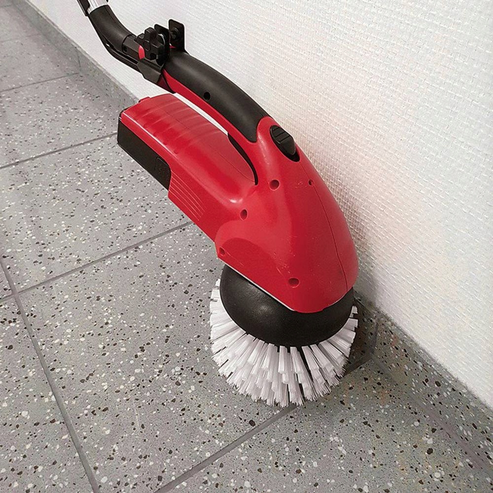 Скрубер Scrubby — це зручний пристрій, який важить лише 3 кг, тому його легко носити з собою. Управління машиною дуже просте, що робить її зручною у використанні. Пристрій можна використовувати безпосередньо, але також можна прикріпити до нього телескопічну палицю, завдяки якій робочий діапазон можна регулювати від 100 до 137 см. Стандартно підлогомийна машина працює зі щіткою шириною 18 см, але також можна встановити тримач із накладкою шириною 15 см. Практичність скрубера SCRUBBY найкраще видно в ситуаціях, коли традиційні методи очищення незручні або вимагають багато часу. Завдяки своїй легкості та універсальності скруббер SCRUBBY ідеально підходить для завдань, які потребують ефективного прибирання у важкодоступних місцях.
