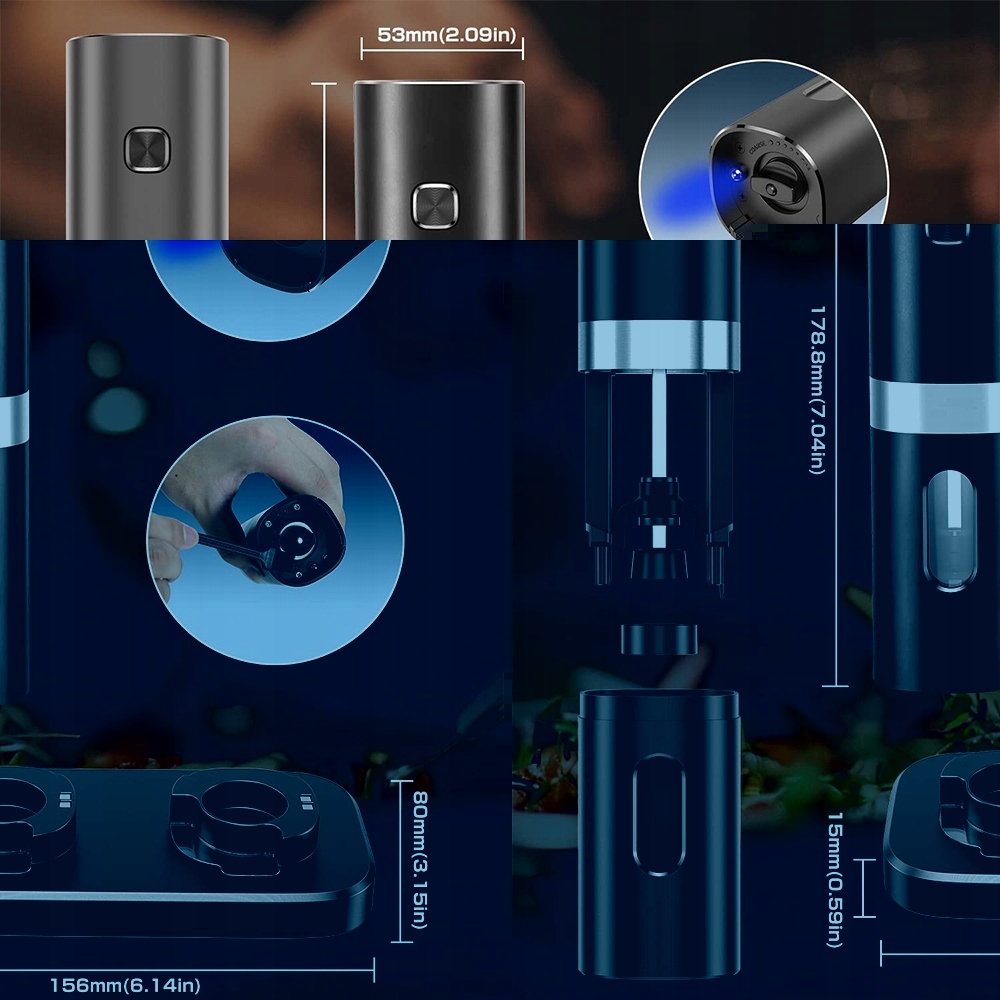 - ✔️ ПОДВІЙНА ЗАРЯДНА БАЗА - Електрична перцемолка постачається з кабелем Type-C, щоб швидко повністю зарядити 2 млинки одночасно за 1 годину. Під час заряджання або роботи вбудований синій світлодіодний індикатор автоматично загоряється, щоб було легше спостерігати, не перебираючи верх