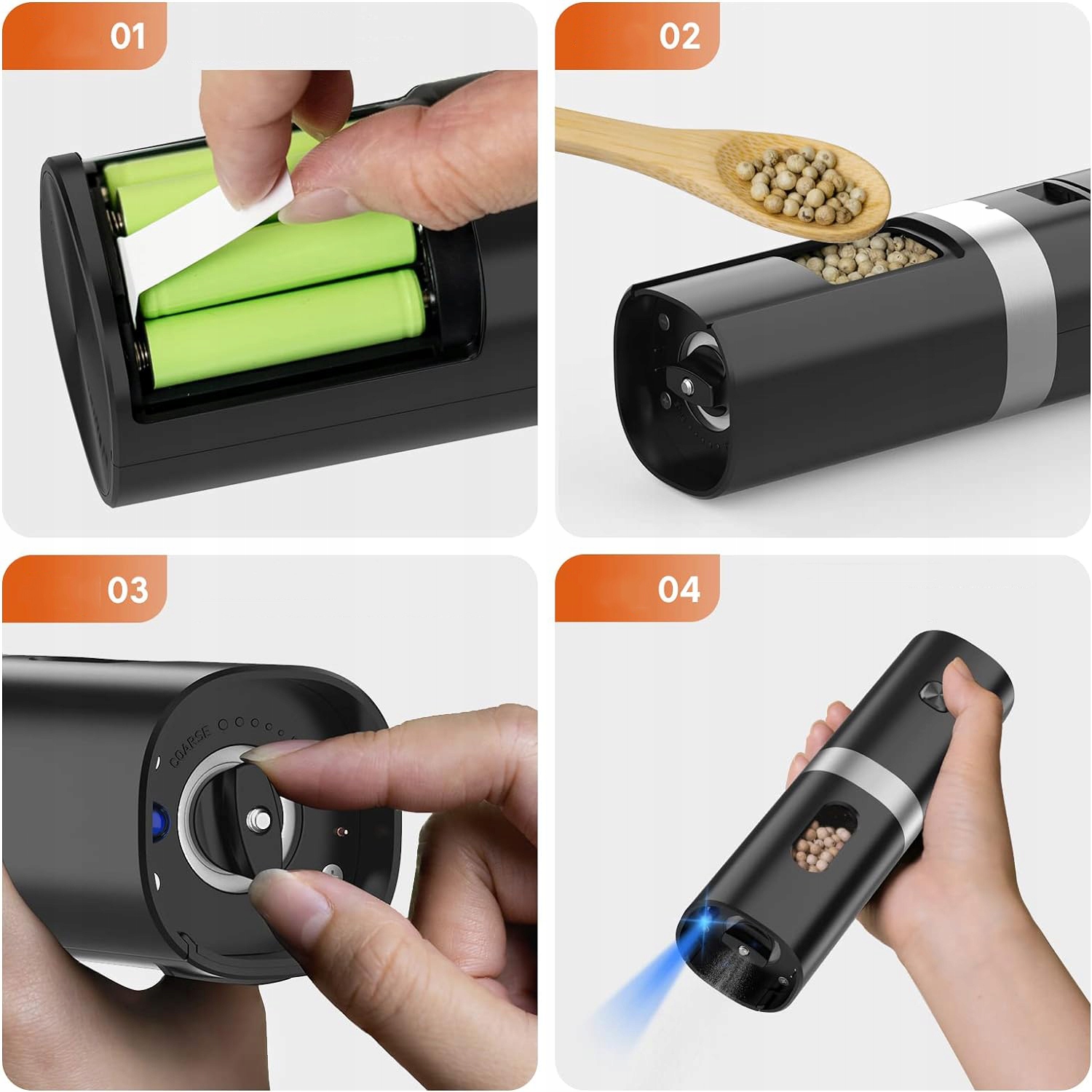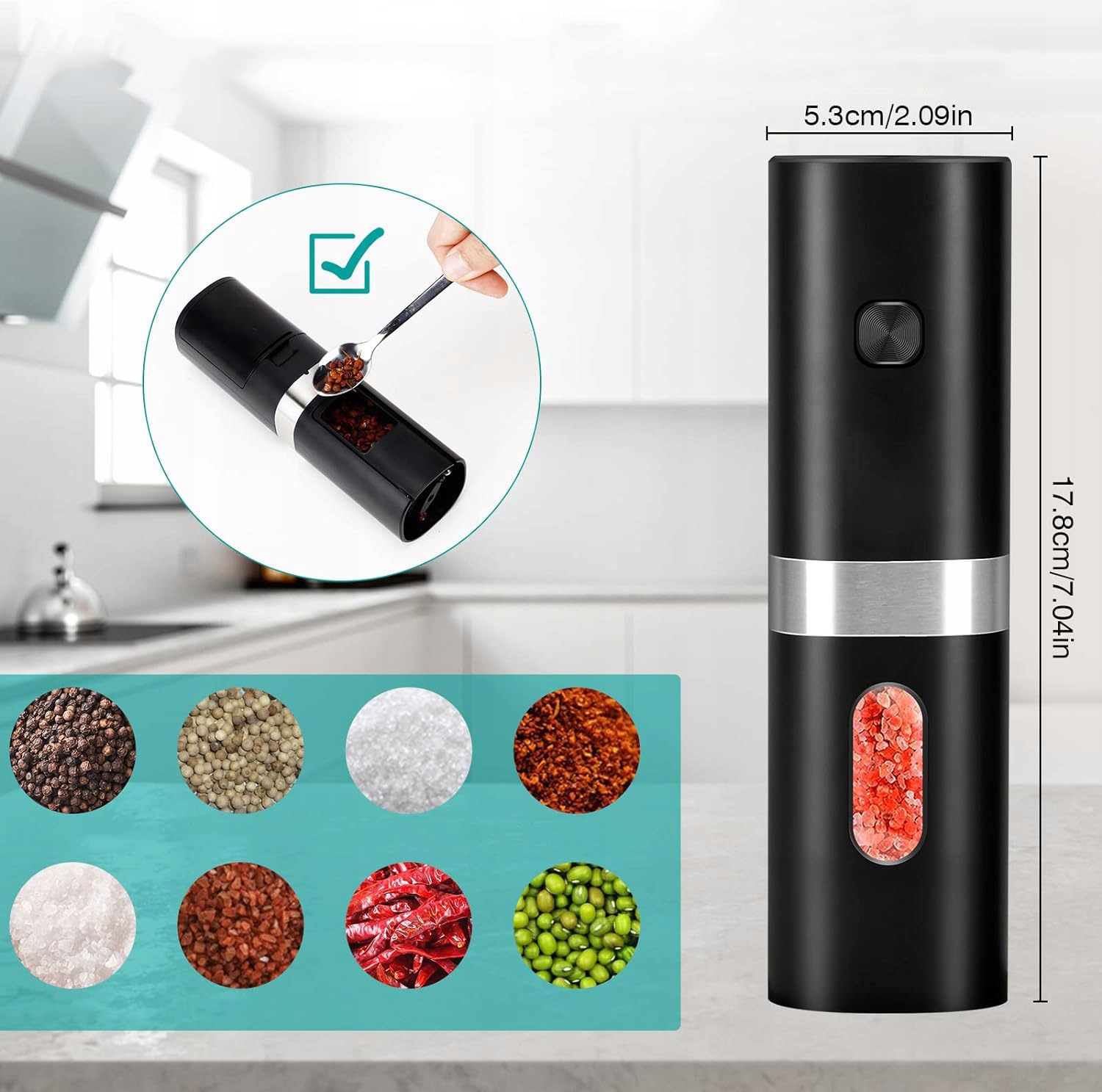 - Легке керування однією рукою, просто натисніть кнопку, і ви отримаєте свіжомелені спеції, які додадуть смаку та покращать ваші страви.