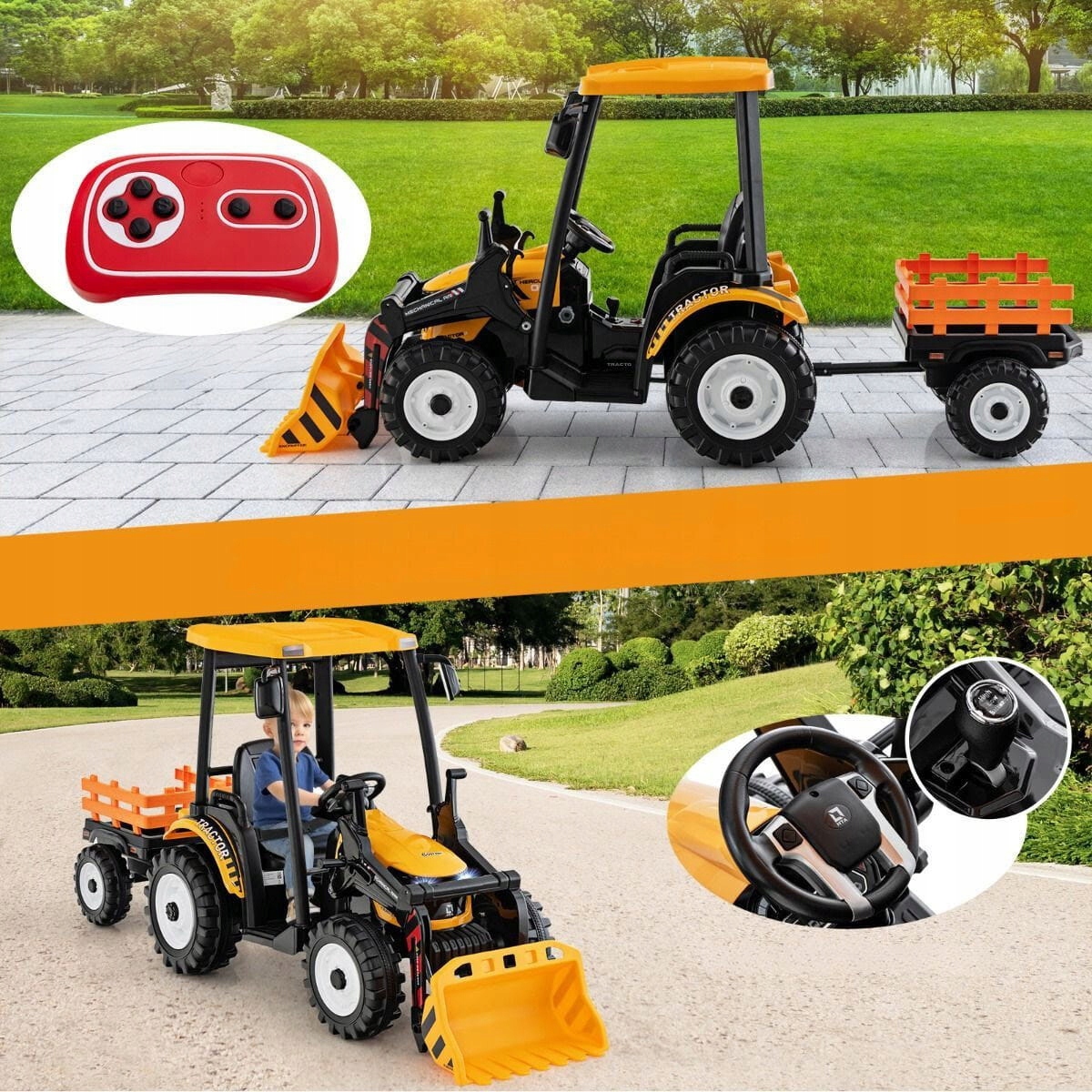 Ідеальний електромобіль для дітей: трактор — ідеальний електромобіль для дітей віком від 3 до 8 років. Захисний дах, дзеркала заднього виду і яскраві фари роблять автомобіль схожим на справжній будівельний трактор. Живиться від акумулятора 12 В, він забезпечує безпечну швидкість 3-6 км/год і тривалий час відтворення.