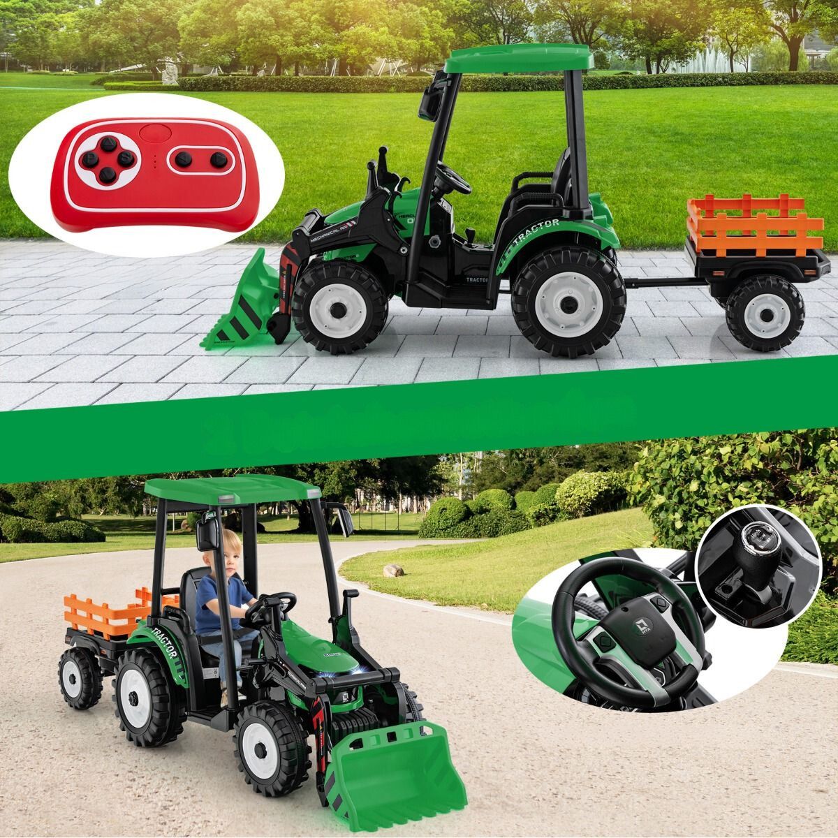 Ідеальний електромобіль для дітей: Трактор — ідеальний електромобіль для дітей віком від 3 до 8 років. Захисний дах, дзеркала заднього виду і яскраві фари роблять автомобіль схожим на справжній будівельний трактор. Живиться від акумулятора 12 В, він забезпечує безпечну швидкість 3-6 км/год і тривалий час відтворення.